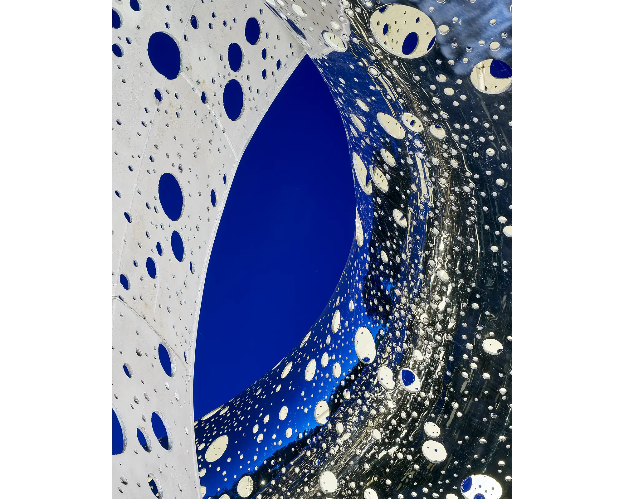 Named after the ancient symbol of a serpent eating its own tail, Ouroboros embodies the eternal cycle, a concept reflected across cultures. Positioned at the entrance to the National Gallery, the sculpture invites visitors to pass through it and into a chamber where light and darkness come together. Thousands of perforations cover its surface, allowing light beams to dance through and transform the space. By day, its mirrored steel reflects the transitory world around it—people, clouds, and birds; by night, it has an internal glow, returning light to its surroundings, a symbol of the continuity and interconnectedness of all things.