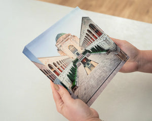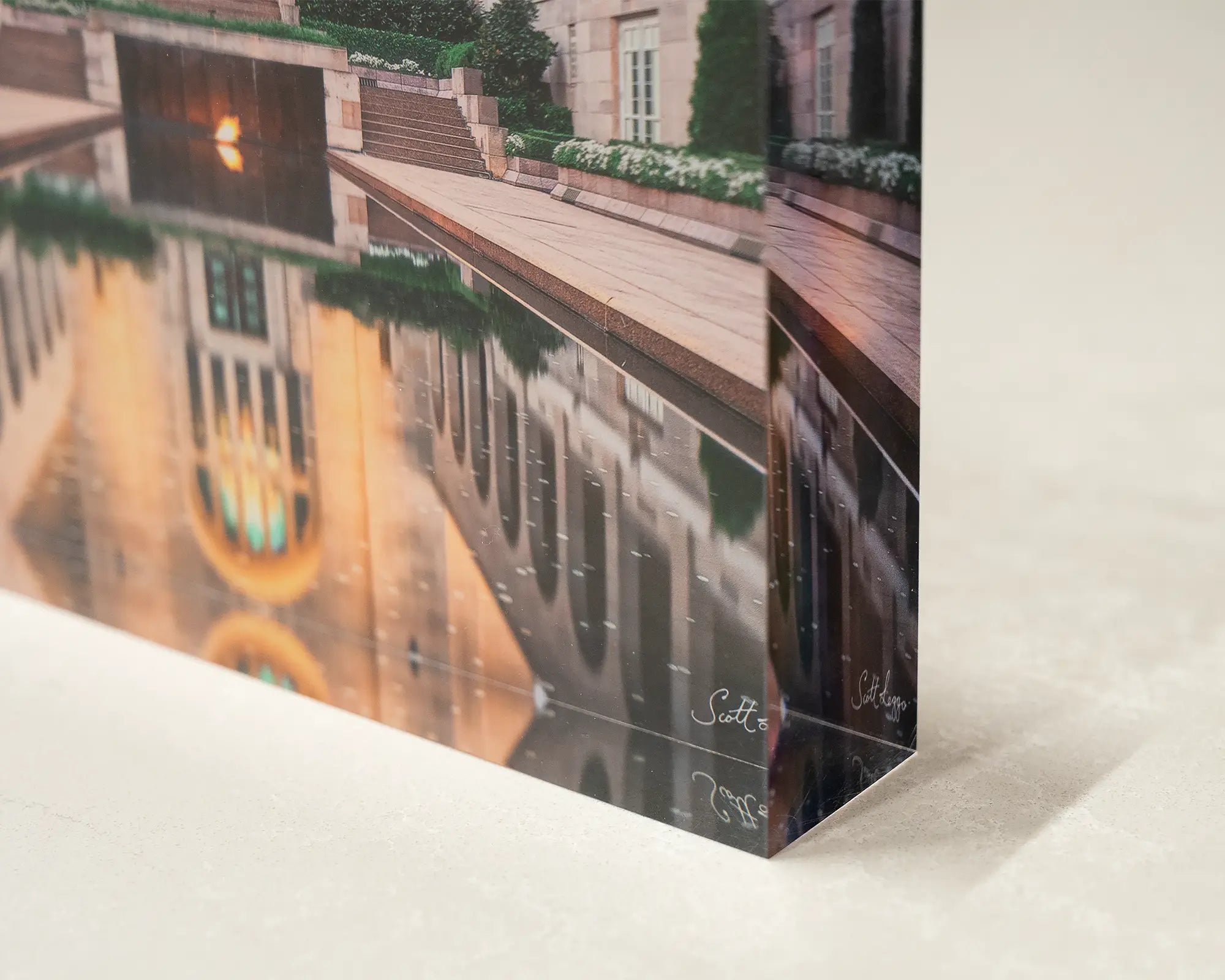 Our acrylic blocks give the photo a three dimensional look. They are perfect for desks, bookshelves, mantlepieces, bed side tables - any horizontal surface.