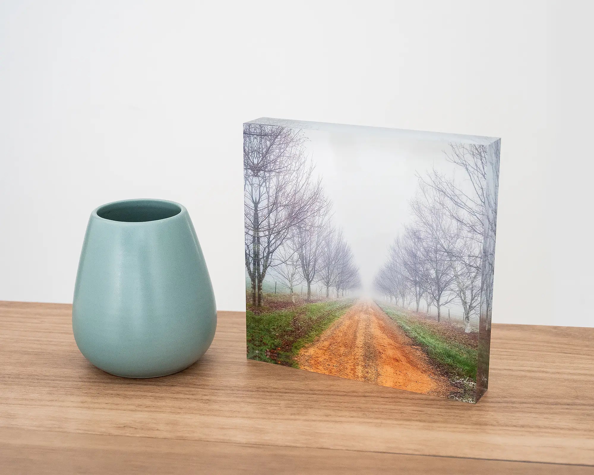 Our acrylic blocks give the photo a three dimensional look. They are perfect for desks, bookshelves, mantlepieces, bed side tables - any horizontal surface.