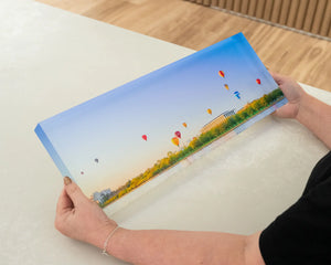 Our acrylic blocks give the photo a three dimensional look. They are perfect for desks, bookshelves, mantlepieces, bed side tables - any horizontal surface.