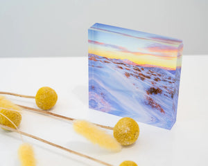 Our acrylic blocks give the photo a three dimensional look. They are perfect for desks, bookshelves, mantlepieces, bed side tables - any horizontal surface.