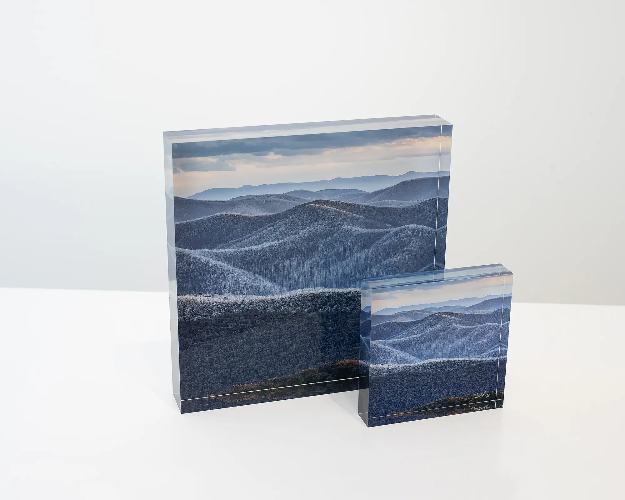 Our acrylic blocks give the photo a three dimensional look. They are perfect for desks, bookshelves, mantlepieces, bed side tables - any horizontal surface.