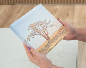 Our acrylic blocks give the photo a three dimensional look. They are perfect for desks, bookshelves, mantlepieces, bed side tables - any horizontal surface.