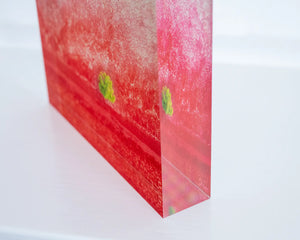 The photo is printed on professional grade metallic photographic paper, using archival inks. It is then mounted on the back of an acrylic (plexiglass) block. It is finished with diamond polishing, buffing and final hand polish.