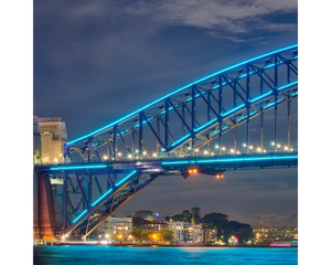 "Sydney's annual Vivid festival lights up Sydney in incredible colours. On this evening, as the bridge cycled through its colours, I patiently waited for the right moment between transiting boats to have a clear view through to Kirribilli. With the bridge illuminated in blue it made for an impressive sight of these iconic Sydney landmarks." - Scott