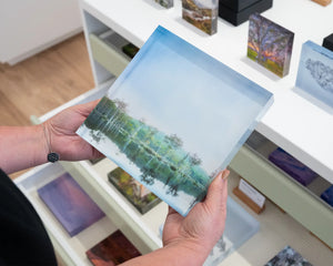 Our acrylic blocks give the photo a three dimensional look. They are perfect for desks, bookshelves, mantlepieces, bed side tables - any horizontal surface.