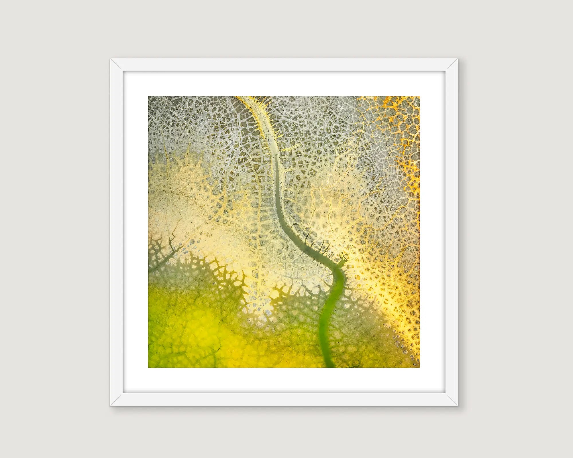 Enjoy the captivating allure of this DEHYDRATION aerial landscape photography wall art on your wall. Captured by Scott Leggo from the air, this mesmerizing abstract composition will transform your interior space with its unique and intriguing dimensions to the photo. The intricate patterns and interplay of yellow and green create a dynamic visual experience, inviting you to interpret and appreciate the landscape in a fresh and abstract way. Perfect for those who appreciate contemporary and thought provoking art, this abstract artwork art print will bring a burst of colour and abstract beauty to your home, elevating your space with a modern and visually engaging focal point.