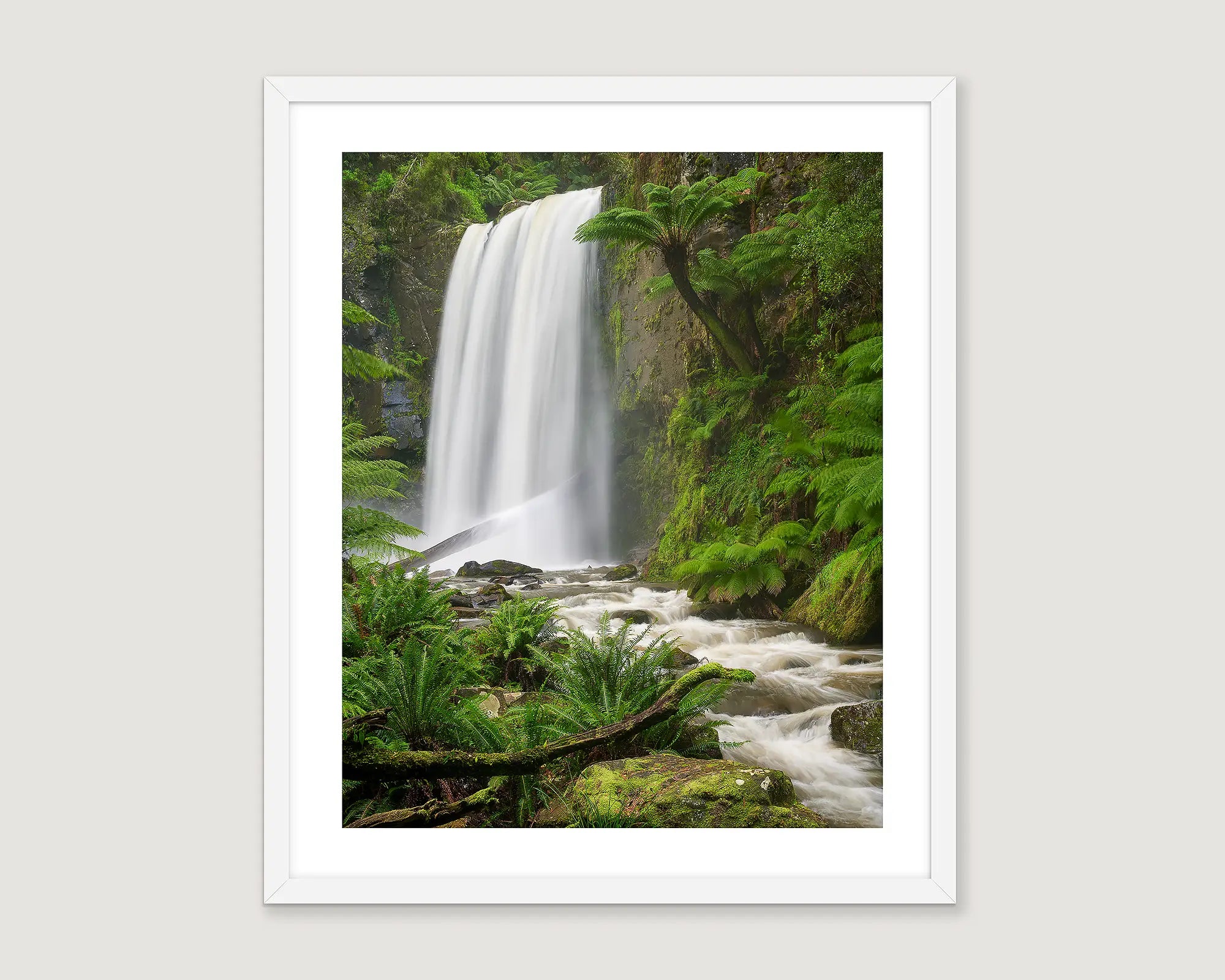 Immerse yourself in the beauty of the Otways with this photograph of Hopetoun Falls. Capturing the waterfall plunging into the lush temperate rainforest below, this artwork brings the serenity and power of nature into your space. The cascading water, framed by rich green ferns and moss-covered rock, evokes calm, renewal and timeless natural energy. Perfect for any home or office seeking a tranquil connection to Australia’s landscapes.