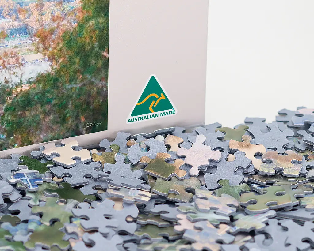 Our jigsaw puzzles are proudly made in Australia to the highest quality. They utilise blue board backing to ensure that each piece stands the test of time. Each piece has been cut to unique shapes so it is easier to place each jigsaw piece.