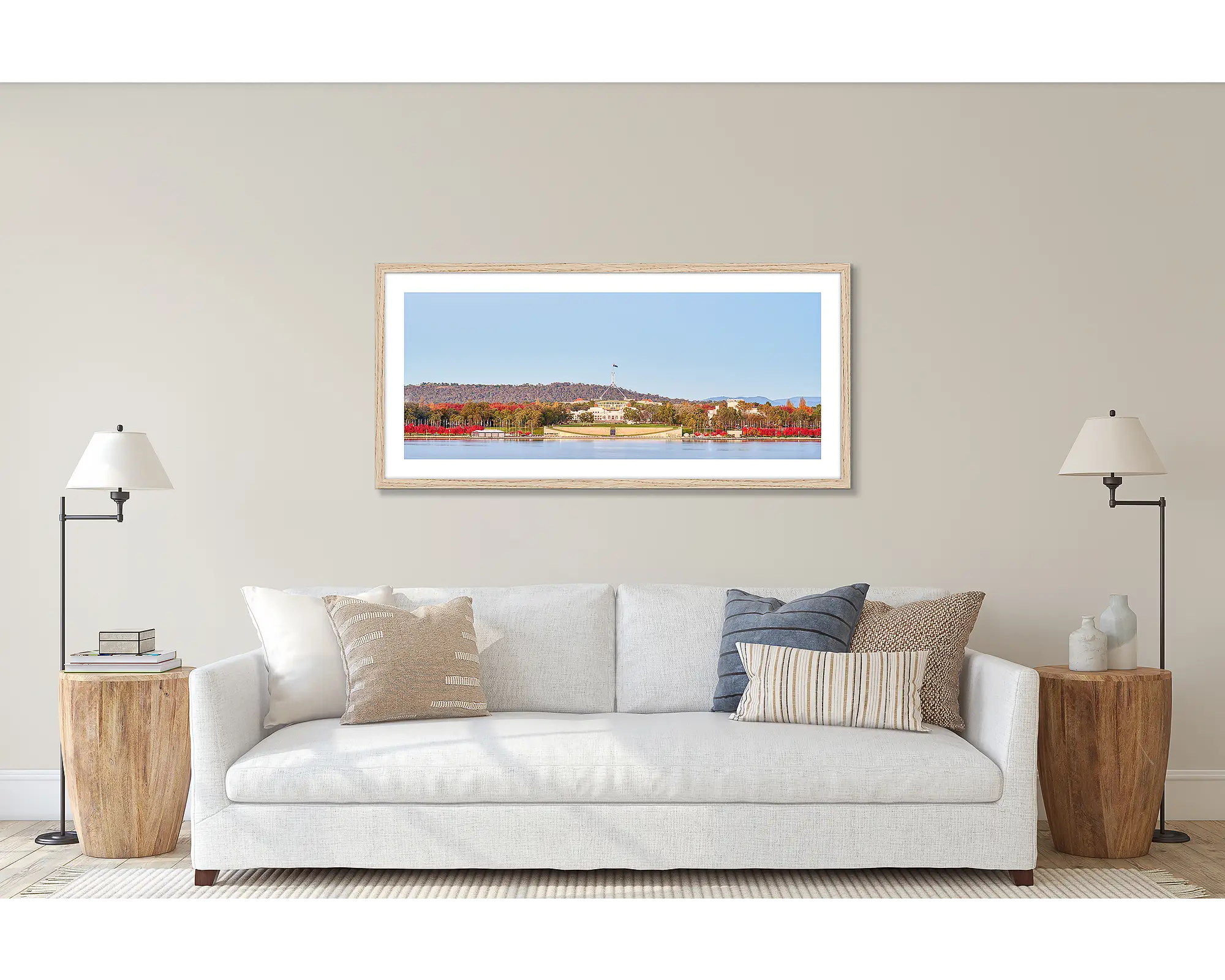 Looking to showcase Canberra in autumn but also want to highlight Parliament House? Then PARLIAMENTARY REDS is a great choice. This wall art print will not only add a touch of autumn colour to any interior, but showcase Australia's national capital in great light.