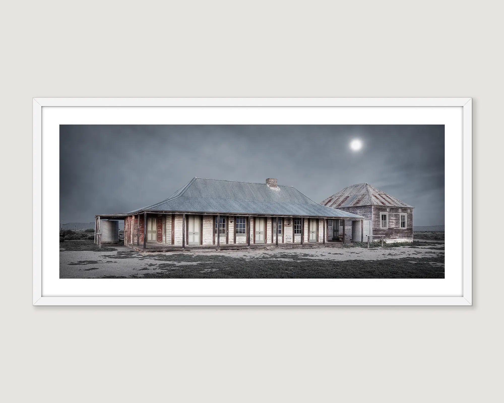 Immerse yourself in the captivating simplicity of the Australian outback landscape with Scott's award winning artwork ONE TREE HOTEL. The subtle hues and minimalist composition make this a great addition to any room where you want to convey a connection to Australia's historical past Order online with free delivery Australia wide and bring an outback association to your surroundings.