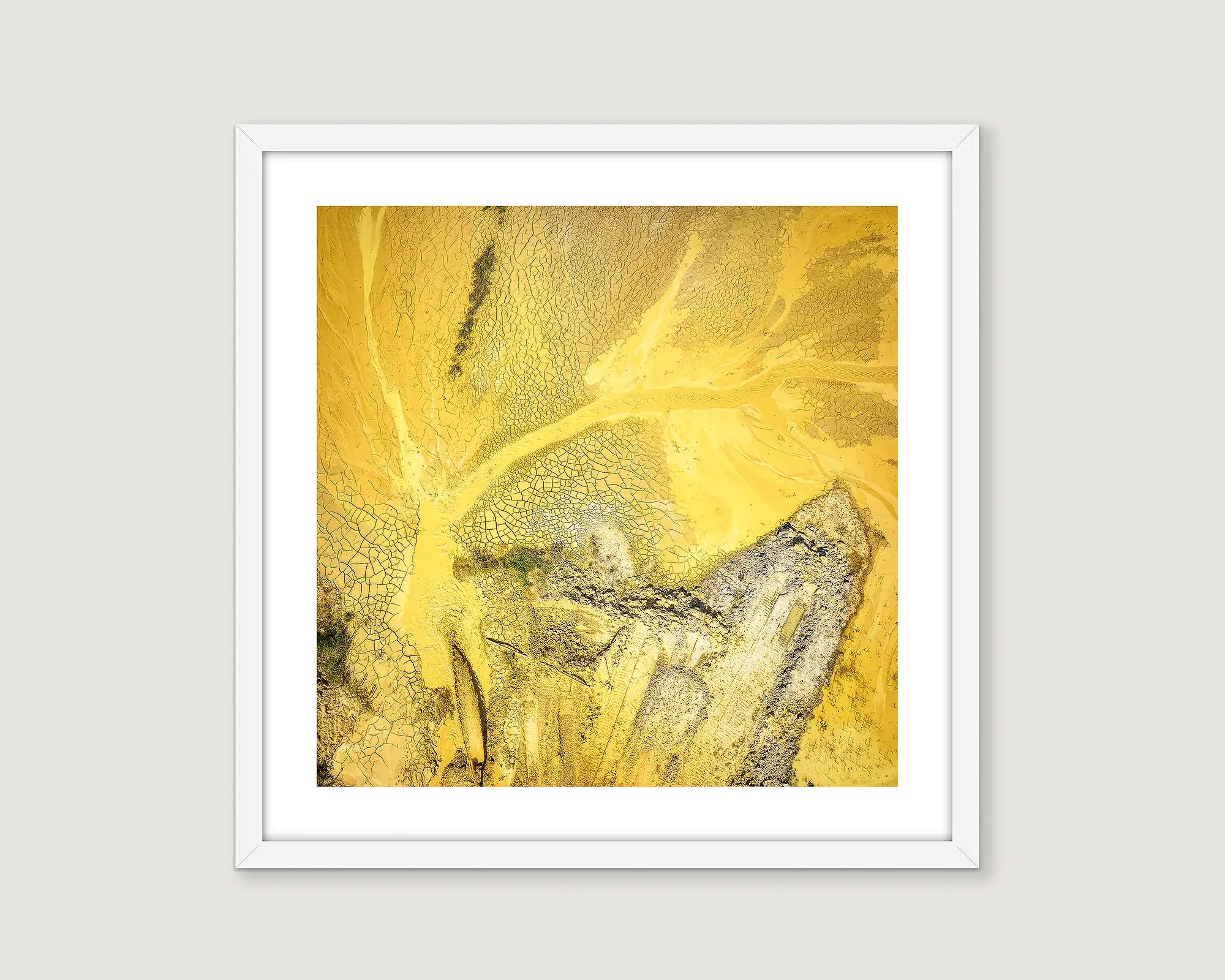 A captivating focal point for any room, this aerial image of a sand mine transforms a mundane site of industrial activity into a bold yellow canvas adorned with intricate patterns. Pair with Scott's LINES if you're looking to make a truly bold statement with your interior decor, as these two come together to create a striking and complementary pairing thanks to their bold blue and yellow hues that are similar in value, adding depth and visual interest to any space.