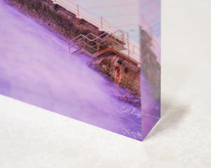 The photo is printed on professional grade metallic photographic paper, using archival inks. It is then mounted on the back of an acrylic (plexiglass) block. It is finished with diamond polishing, buffing and final hand polish.