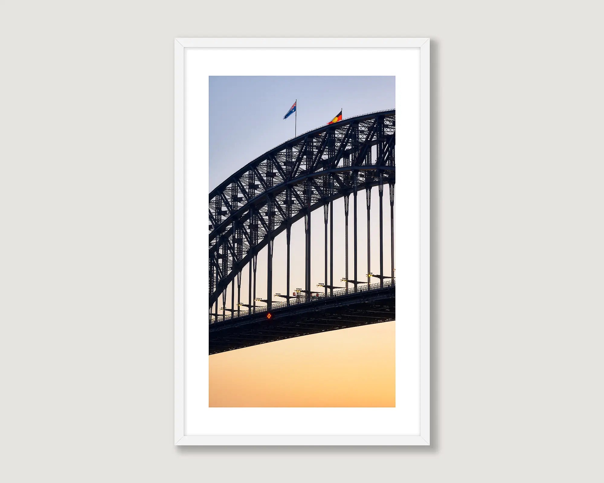 //www.scottleggo.com/cdn/shop/files/bridge-sunset-framed-photograph-in-white-frame.webp?v=1771910569 1.25