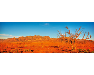 Bring the sublime beauty of the Flinders Ranges into your home with Scott's DESERTED wall art print. Serving as reminder of the quiet majesty found within the heart of the Flinders Ranges, this artwork blends warm earth tones, with a contrasting blue sky, bringing the essence of the outback into your living environment.