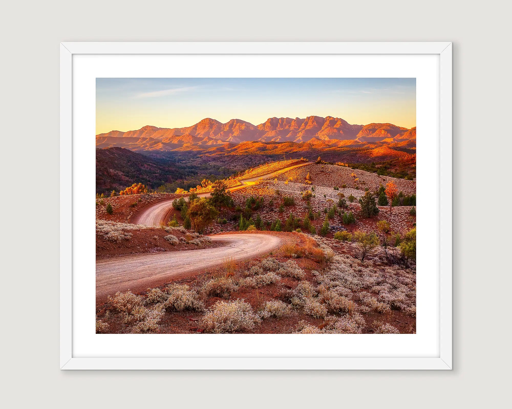Elevate your décor with this outback artwork, and let the rugged beauty of the Australian landscape inspire and invigorate your surroundings. Hang this on your wall and gaze upon the majestic vista of Bunyeroo Valley and Wilpena Pound as the morning light bathes the landscape in a warm, golden glow. Shop this wall art online and create a captivating focal point that will garner attention and add a touch of natural elegance to any space.