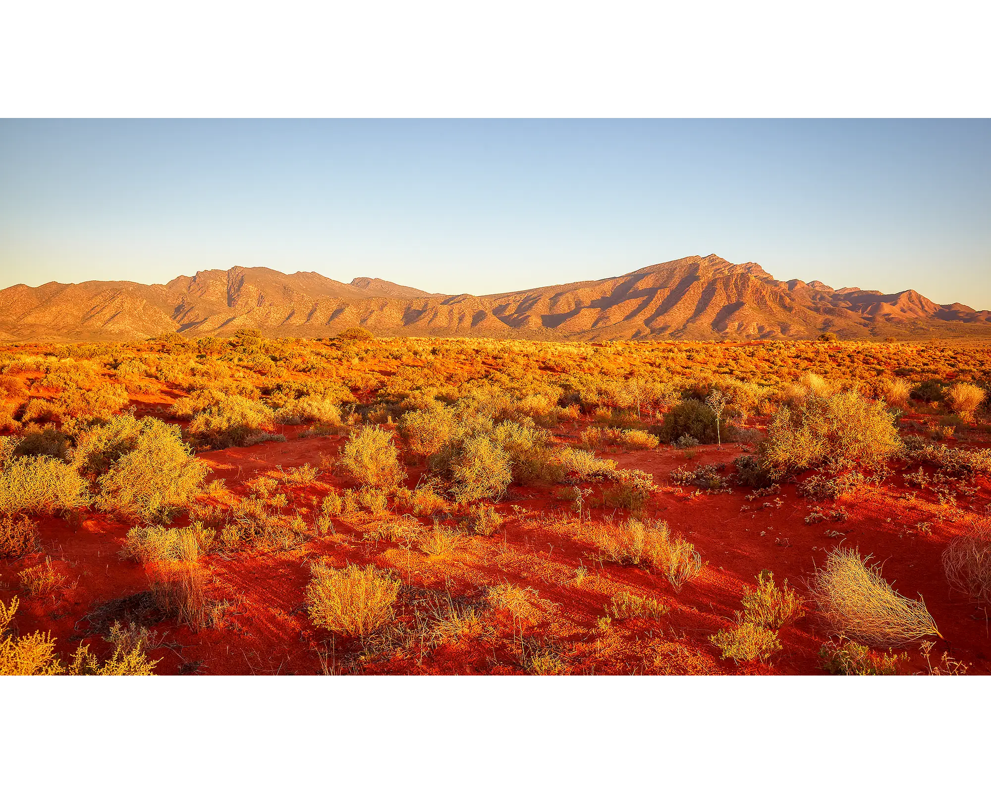 The awe inspiring Wilpena Pound in the Flinders Ranges is arguably one of the most impressive rock formations in Australia. Yet for me, equally impressive is the variety one finds in the surrounding landscapes. One of those areas that caught my eye on this occasion was this area of sand dunes, with Wilpena Pound in the background. It had rained the day before, with the remaining moisture appearing to concentrate the red colours in the sand. I knew this red would come alive if it was a good sunset so I set about finding the best spot to photograph from. However in doing so, I discovered the area littered with fresh snake tracks and nearby snake nest sites. Normally I'm quite relaxed when out shooting, but on this occasion I was somewhat more alert than usual as I attempted to find an area devoid of recent snake activity. I eventually settled on this spot and waited for sunset. As the sun began to set, the late light highlighted the red colours just as I had hoped. With the image captured I then carefully made my way out of the sand dunes. I hope you find this image more relaxing than I did capturing it!