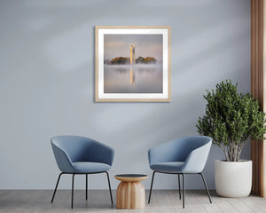 Invite the essence of a quintessential autumnal Canberra morning into your space with Scott's MORNING FOG wall art print. With the National Carillon enveloped by rising fog this wall art is not only perfect for the home as it provides a visual that many Canberrans can relate to, but is also the perfect piece for anyone wanting to anchor their brand or business in Canberra. Truly a versatile piece suited for any space. Choose a Tassie oak frame for a striking finish.