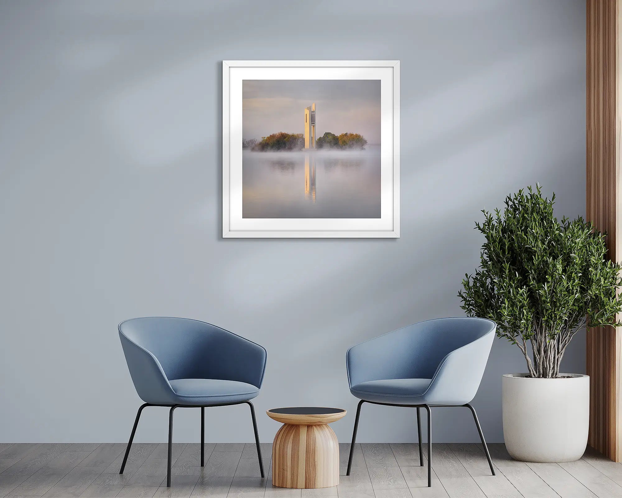 //www.scottleggo.com/cdn/shop/files/morning-fog-wall-art-print-of-national-carillon-in-canberra-framed-with-tassie-oak-frame-hung-in-waiting-room.webp?v=1761091692 1.25