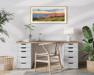 For a finishing touch, consider pairing this artwork with a Tassie Oak frame. Not only will it complement the warm tones of the piece, but it will also add a touch of elegance to any space. Bring the beauty of the Australian high country into your home or office with SUMMER RAZORBACK.
