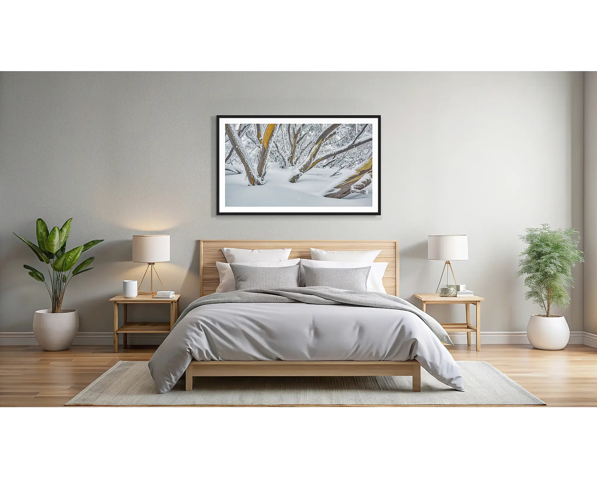 //www.scottleggo.com/cdn/shop/files/after-the-storm-wall-art-print-of-snow-gums-on-mount-hotham-covered-in-snow-framed-with-black-frame-hung-in-light-filled-bedroom.webp?v=1759283705 1.25