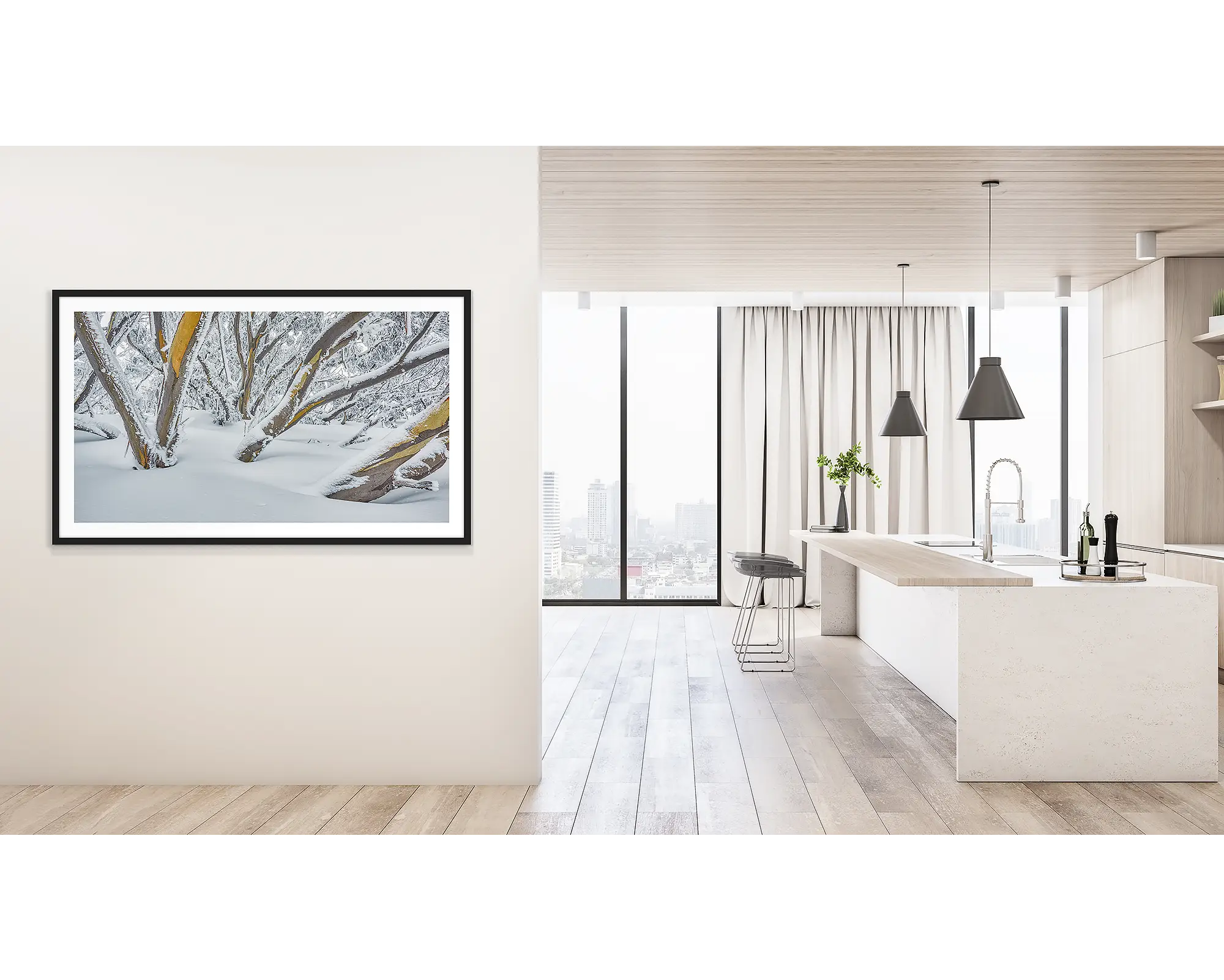 //www.scottleggo.com/cdn/shop/files/after-the-storm-wall-art-print-of-snow-gums-on-mount-hotham-covered-in-snow-framed-with-black-frame-hung-outside-light-filled-kitchen.webp?v=1759283705 1.25