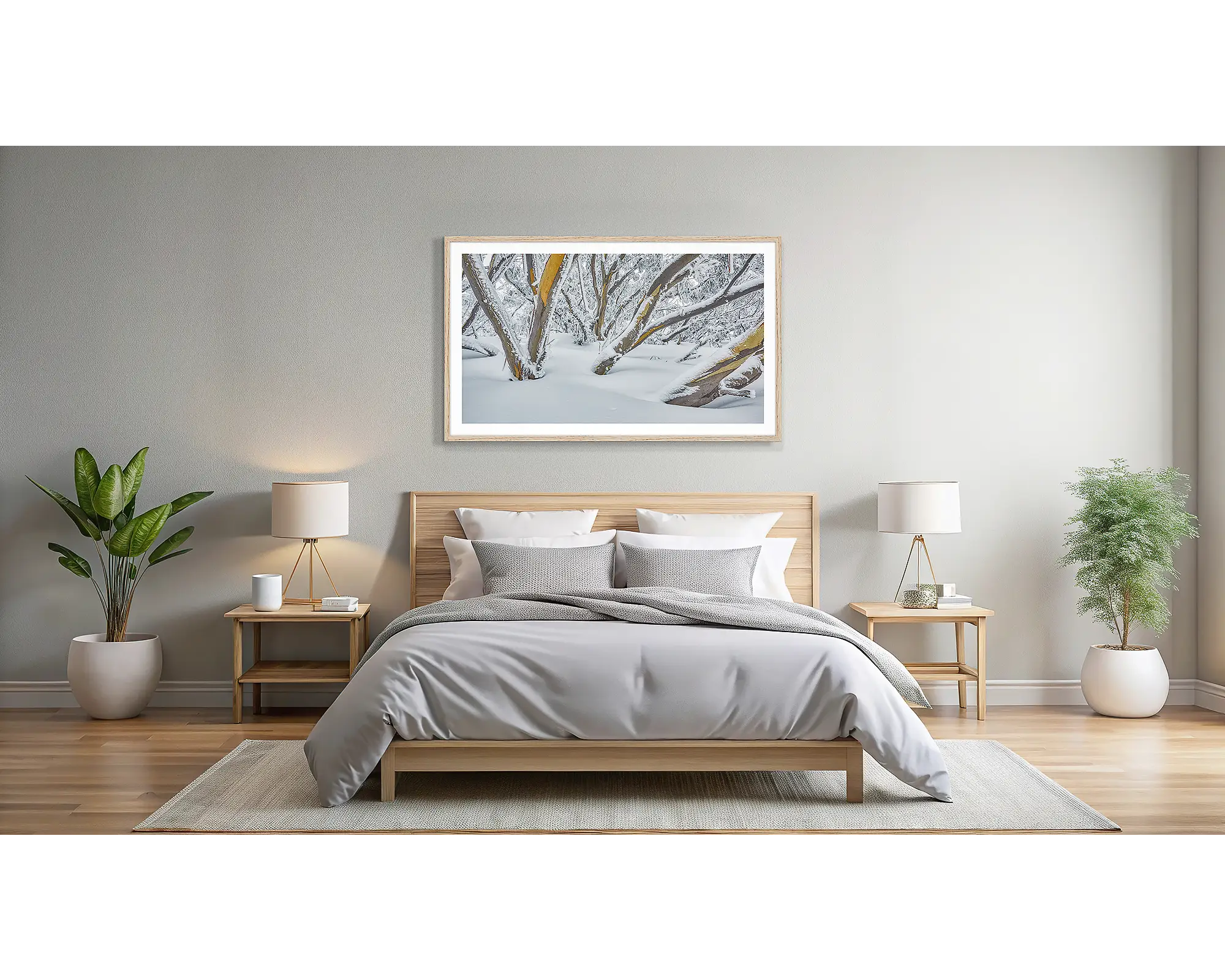 //www.scottleggo.com/cdn/shop/files/after-the-storm-wall-art-print-of-snow-gums-on-mount-hotham-covered-in-snow-framed-with-tasmanian-oak-frame-hung-in-light-filled-bedroom.webp?v=1759283705 1.25