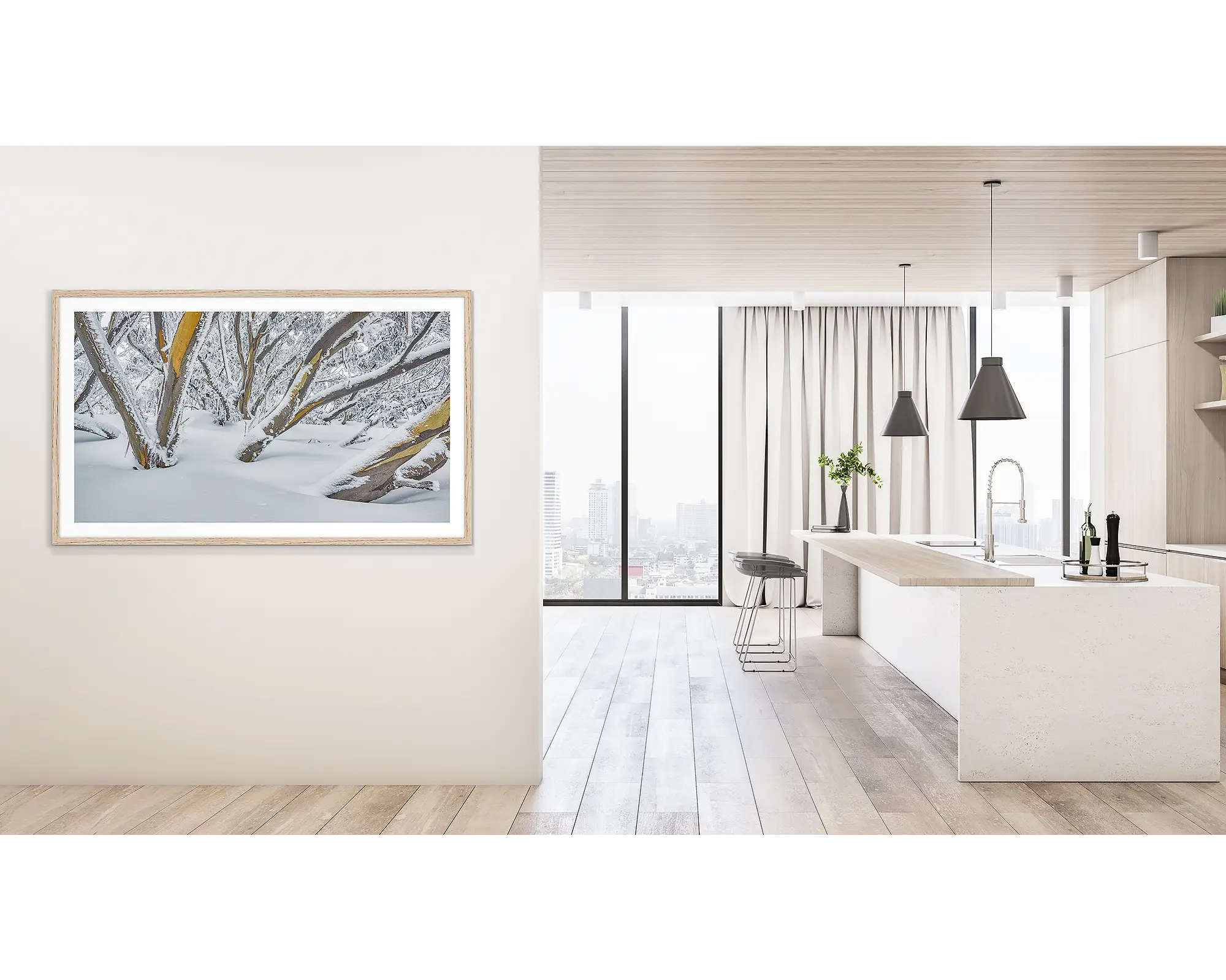 //www.scottleggo.com/cdn/shop/files/after-the-storm-wall-art-print-of-snow-gums-on-mount-hotham-covered-in-snow-framed-with-tasmanian-oak-frame-hung-outside-light-filled-kitchen.webp?v=1759283705 1.25