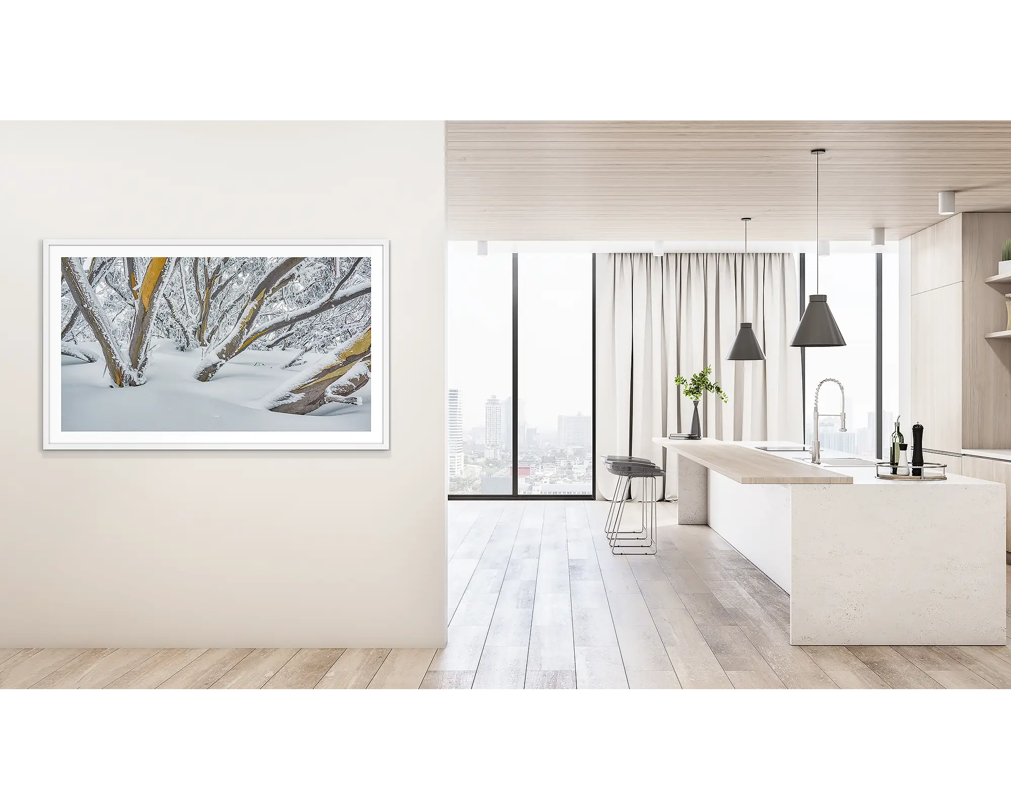 //www.scottleggo.com/cdn/shop/files/after-the-storm-wall-art-print-of-snow-gums-on-mount-hotham-covered-in-snow-framed-with-white-frame-hung-outside-light-filled-kitchen.webp?v=1759283705 1.25