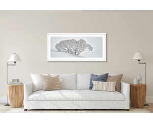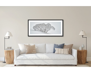 REVEALED presents an exquisite snapshot of Mount Hotham's pristine beauty, featuring a solitary snow gum adorned in a soft coat of snow. This captivating artwork brings the tranquility of the Australian alpine landscape into your home, creating a true winter ambiance. With its minimalist composition and neutral tones, this wall art effortlessly complements any interior decor, making it the perfect addition to elevate your living space.