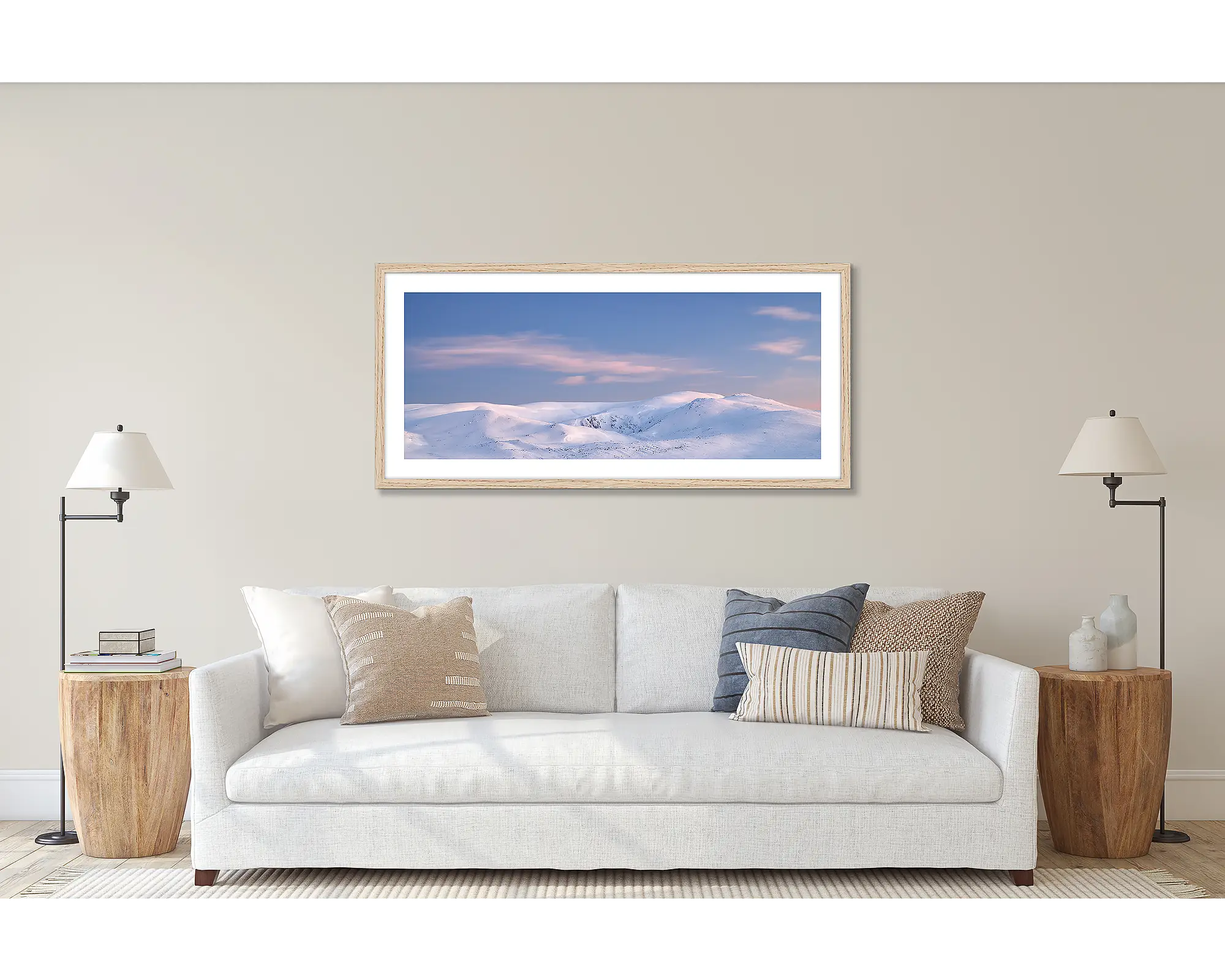 //www.scottleggo.com/cdn/shop/files/early-morning-wall-art-print-of-snowy-mountains-sunrise-with-tasmanian-oak-frame-hung-above-white-couch.webp?v=1759285676 1.25