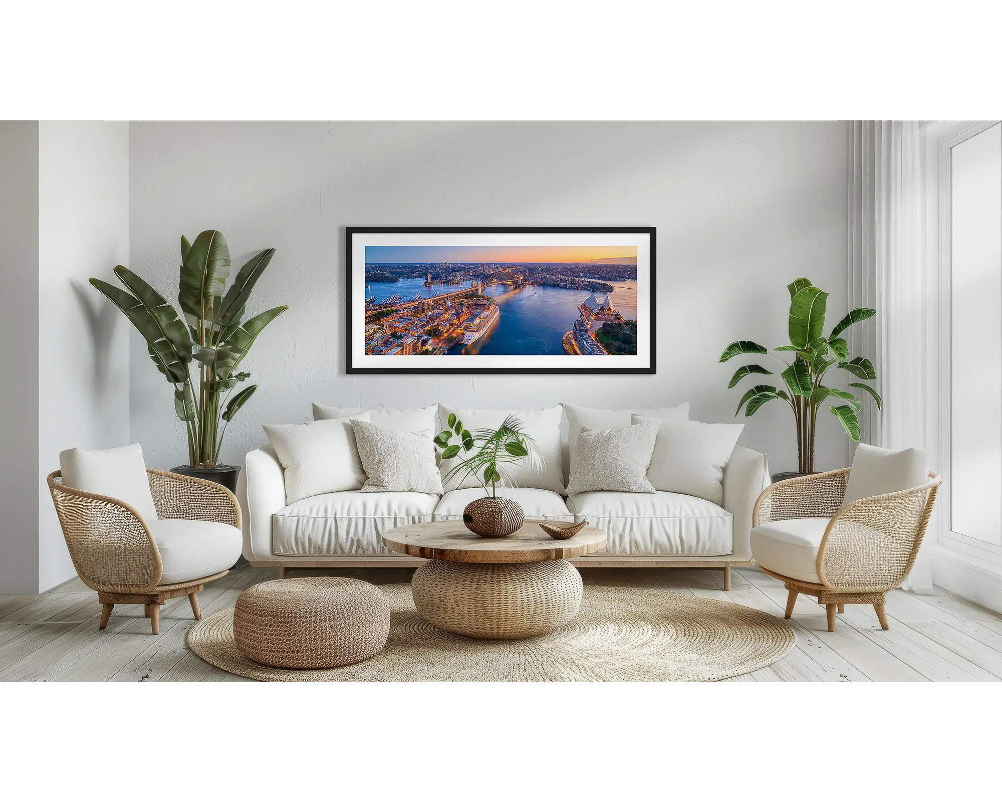 //www.scottleggo.com/cdn/shop/files/sydney-awakes-sydney-harbour-wall-art-in-white-frame-in-lounge-room.webp?v=1755401210 1.25