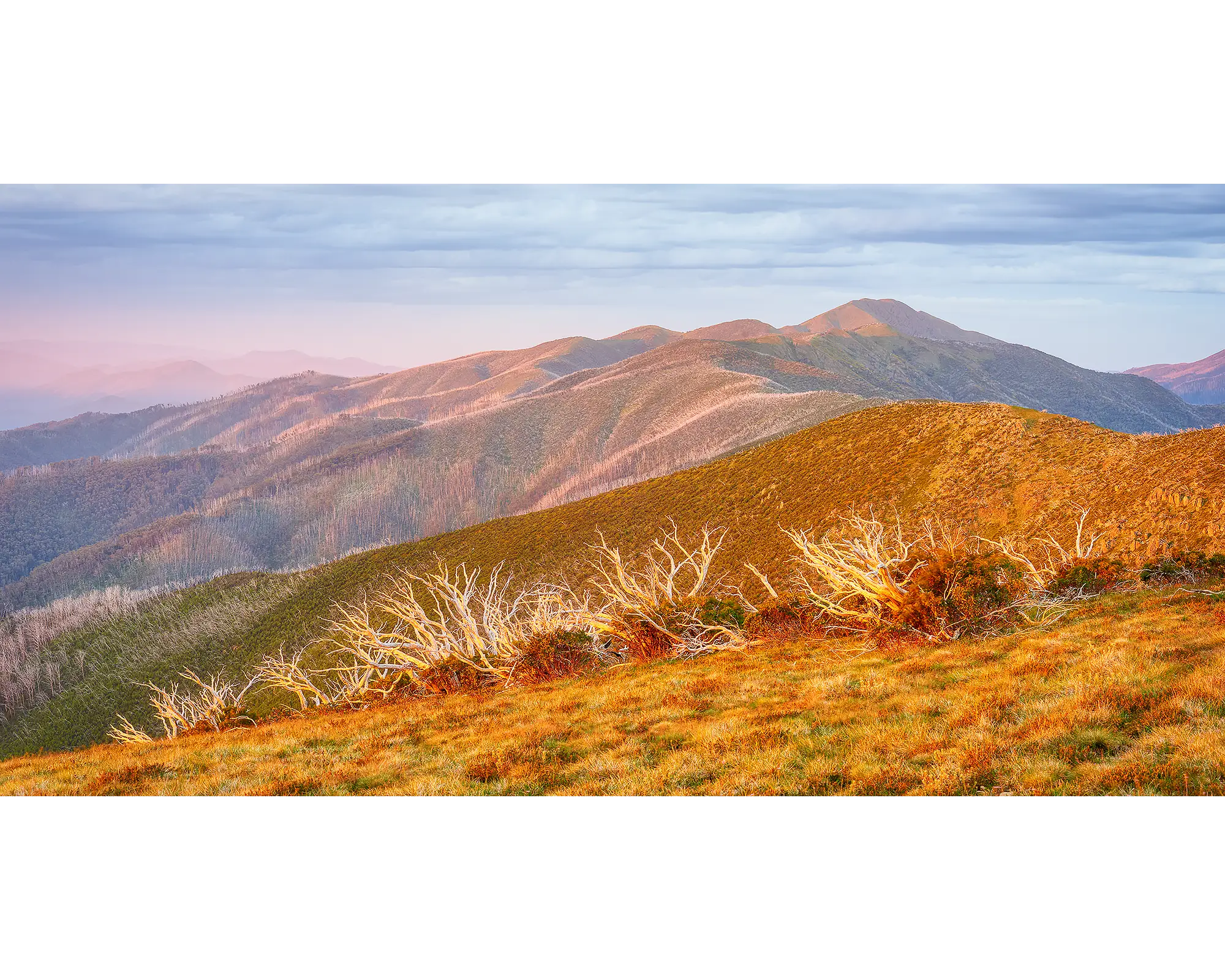On this summer evening, having walked out along the Razorback, the last light of the day lit up a small section of the ridge in front of me. I captured this photo before the sun set and I watched the last remaining glow highlighting the mountain ranges in the distance. Eventually heading back along the track in the dark, I was feeling a real sense of remoteness. I reflected on what was a great way to end the day in the Victorian high country.