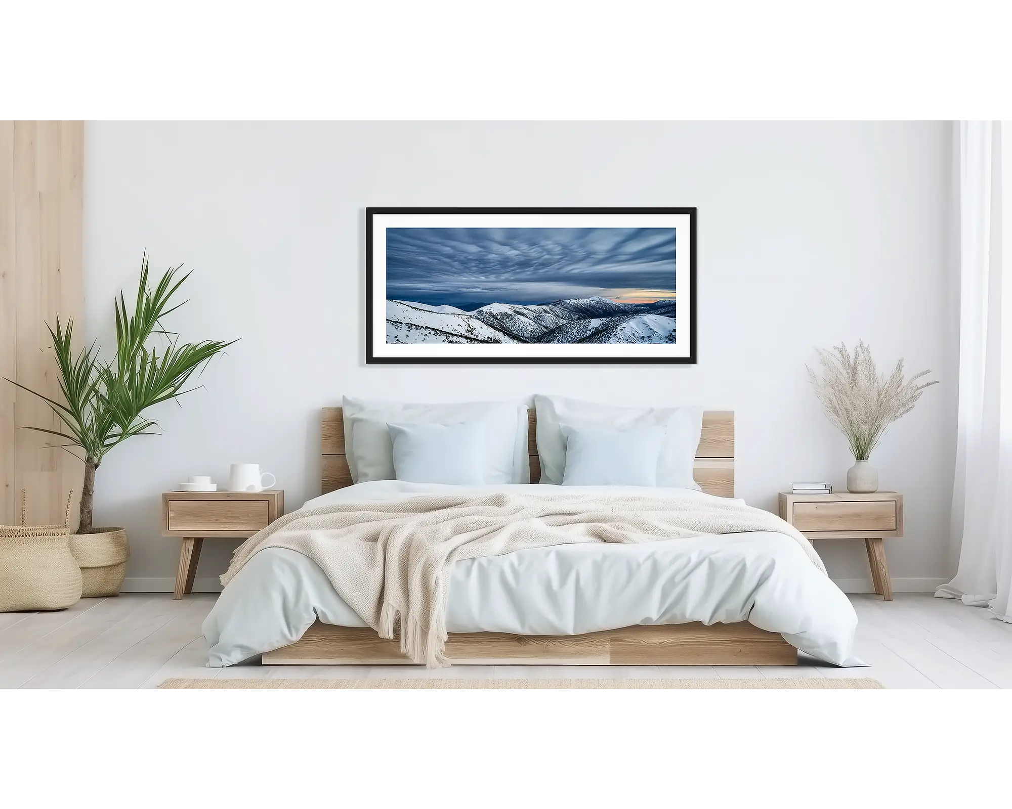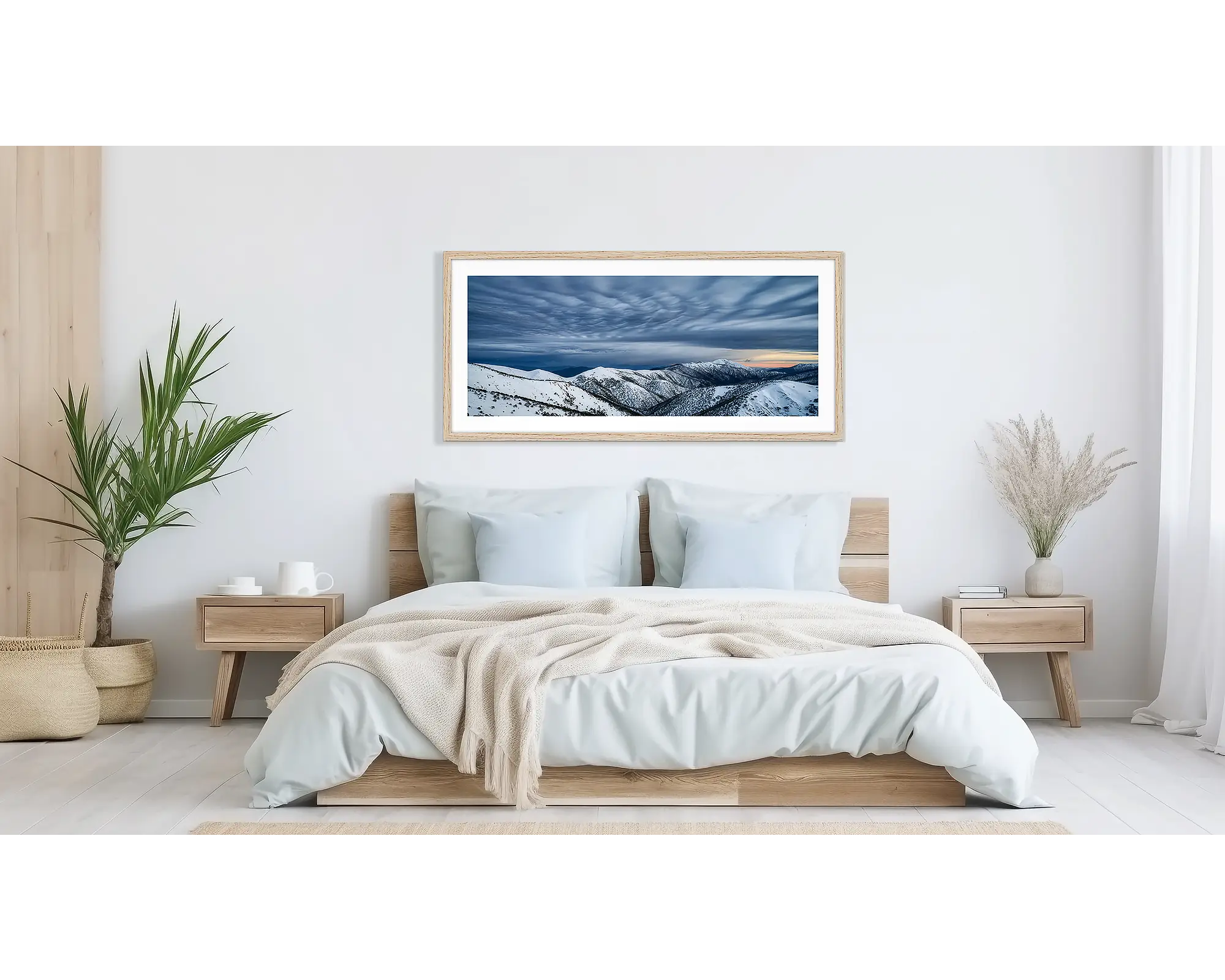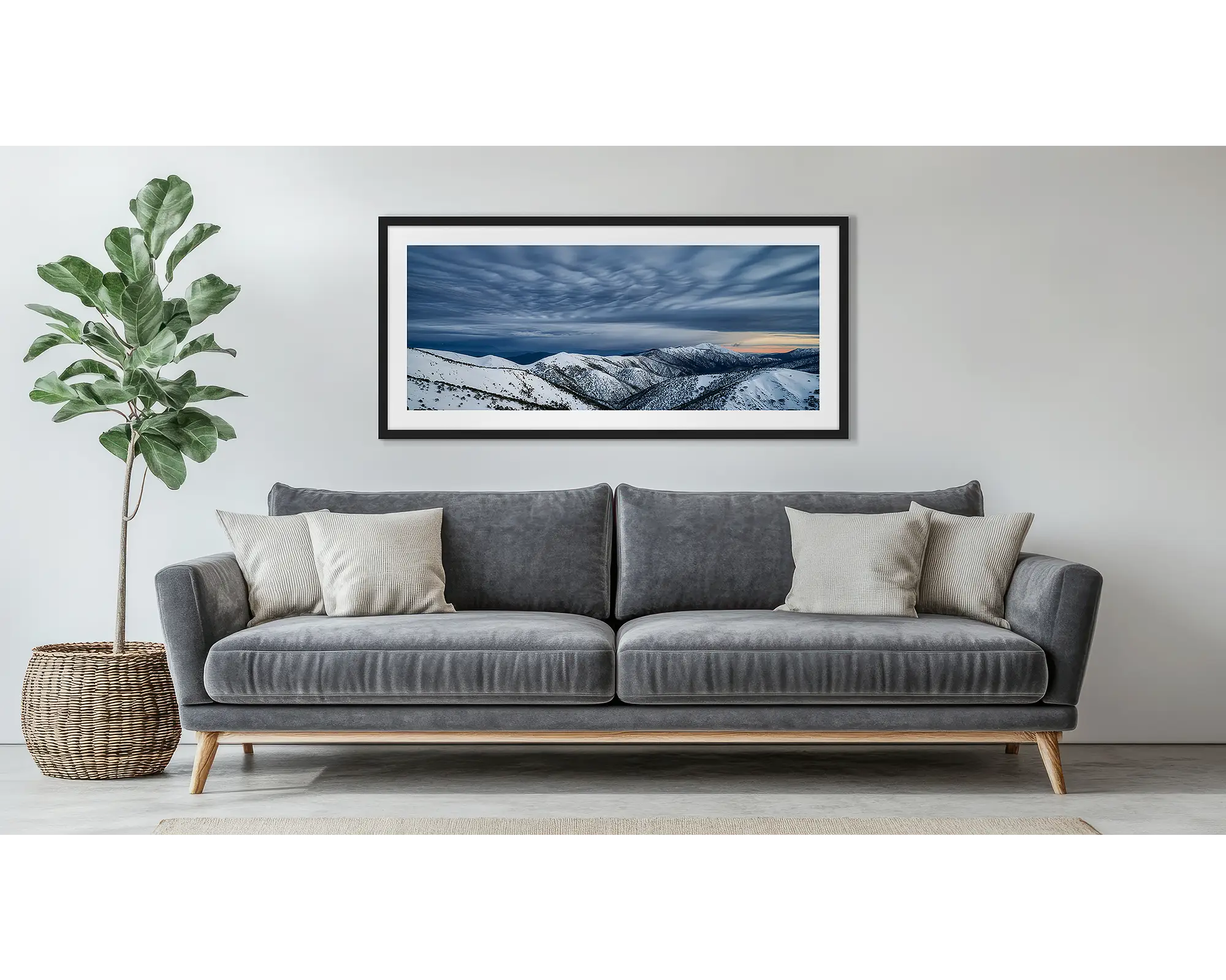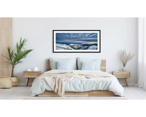 Featuring storm clouds rolling in above Mount Feathertop and The Razorback, this wall art will bring the moodiness of the mountains into your space. Evoking a sense of anticipation and awe in any room, you will experience the dramatic allure of the Victorian alps. Perfect for those who love the area around Mount Hotham or if you're simply seeking to infuse your home with dynamic energy and natural drama. Available in multiple sizes this wall art will add a striking focal point to any room.
