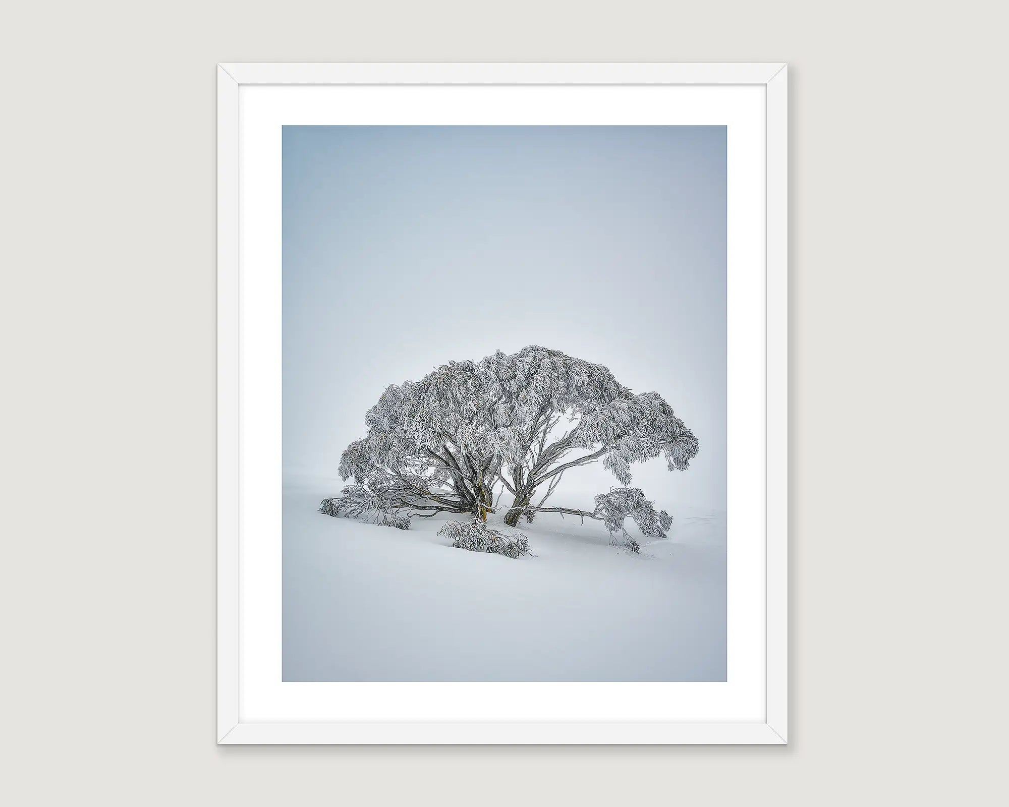 Transform your space with this stunning yet simple Australian snow wall art. CHILLED is a captivating tribute to the serene beauty and snow covered elegance of Australia's iconic snow gums. Available in various sizes and framing options, this artwork transports you to Australia's pristine alpine landscapes, capturing the tranquility and timeless charm of the Australian high country in winter. With subtle white and blue colourings, this tranquil piece promises to transform any room in which you choose to hang it.