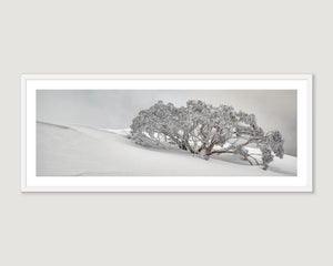 SNOW SOLITUDE captures the essence of the Australian Alps in winter, where a solitary snow gum stands amid the ethereal beauty of fog and snow-covered surroundings. The composition transforms this scene into a captivating visual narrative, inviting you to experience the hushed magic of the alpine winter.