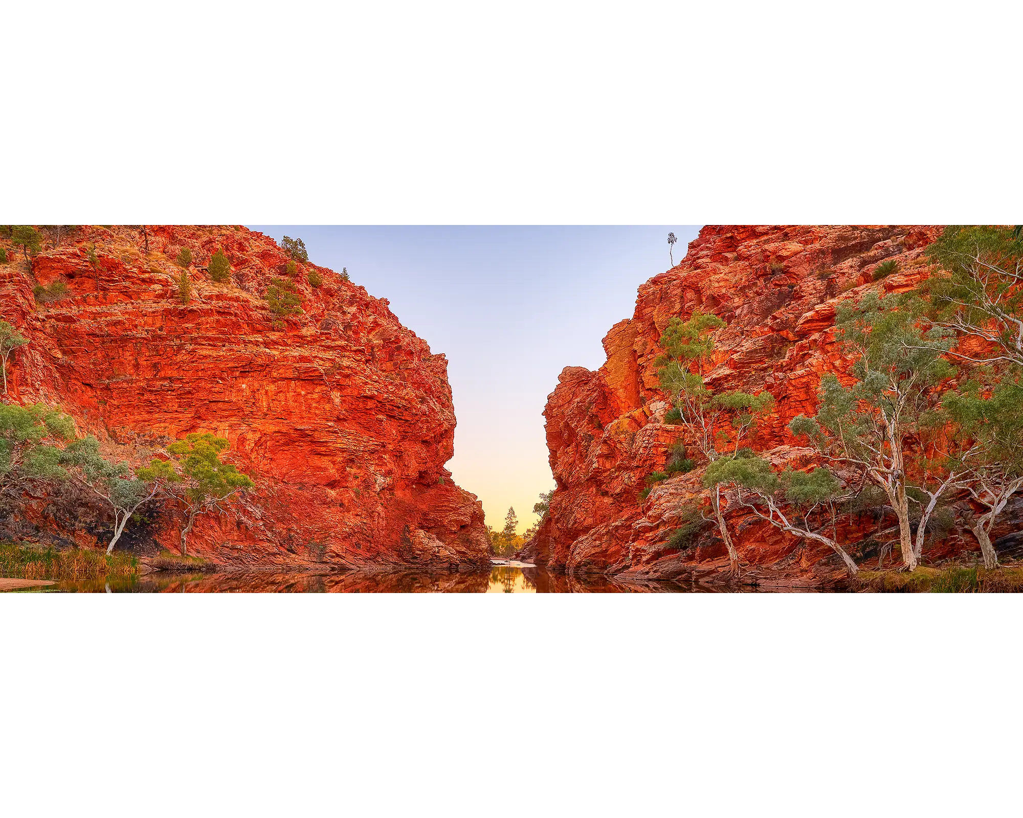 My wife and I were camped at Ellery Creek with no one else around. Rising well before sunrise, I was able to enjoy the early morning serenity alone by the waterhole. As dawn approached and the stars retreated, the high red cliffs lit up, reflected in the waters beneath. In moments like this, I feel deeply connected to my surroundings and it is when I truly enjoy being able to capture photos like this of the Australian landscape to share with others. I remained at this waterhole after sunrise, contemplating this truly spectacular location.