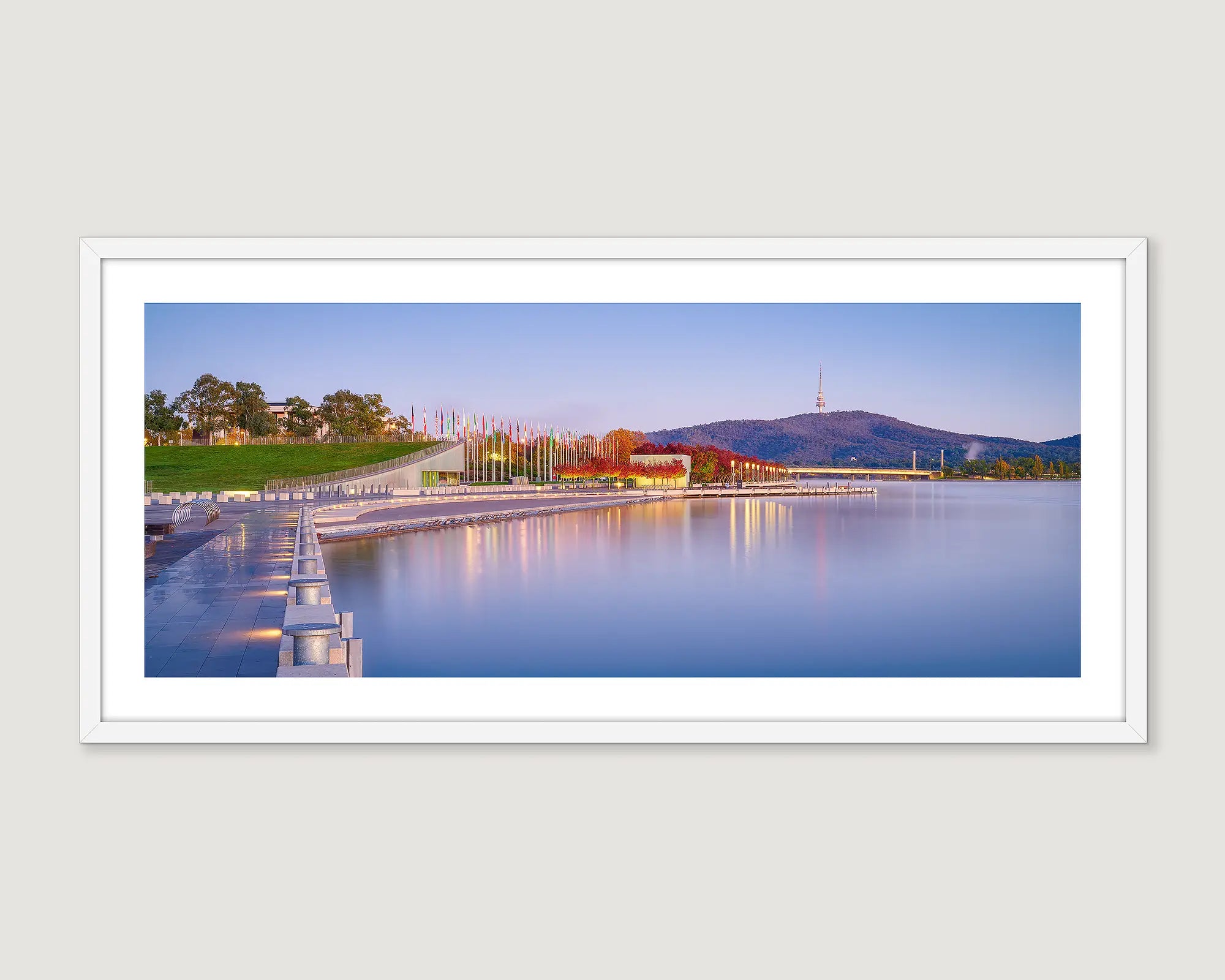 Transform your space with Scott's BEFORE THE RUSH wall art. This stunning piece adds a touch of autumn colour to any interior. Beautifully depicting Canberra at dawn, it's the perfect addition for a Canberra home or office. Make a statement and inspire your space with this unique Australian made wall art.