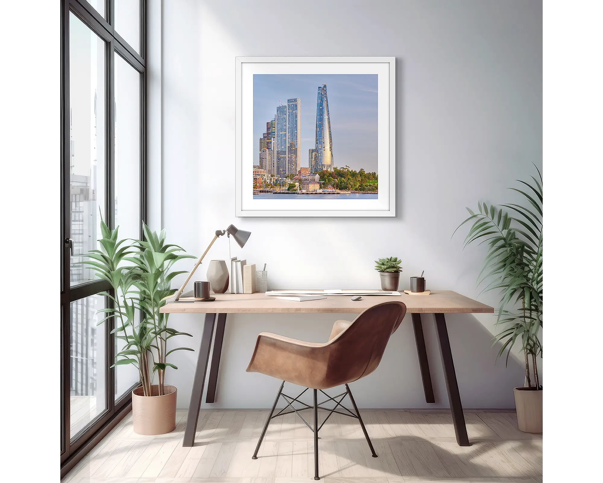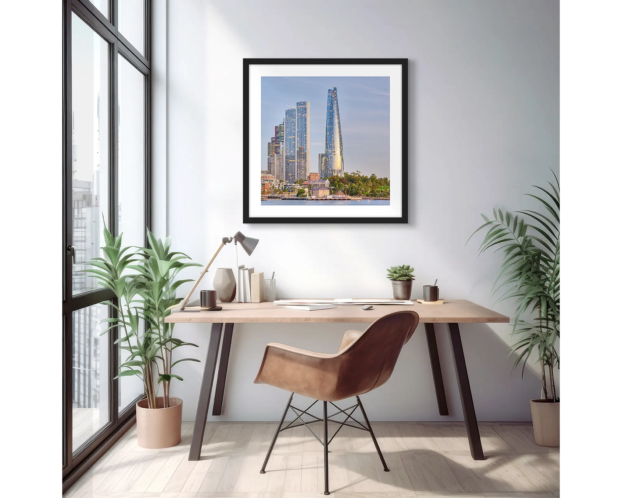 Experience the breathtaking beauty of Sydney's Barangaroo at sunset with this wall art print. Immerse yourself in the vibrant colours and iconic landmarks of modern Sydney city. A must have for any art lover or anyone looking to add a touch of sophistication to their home decor. Own a piece of Sydney today.