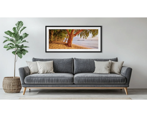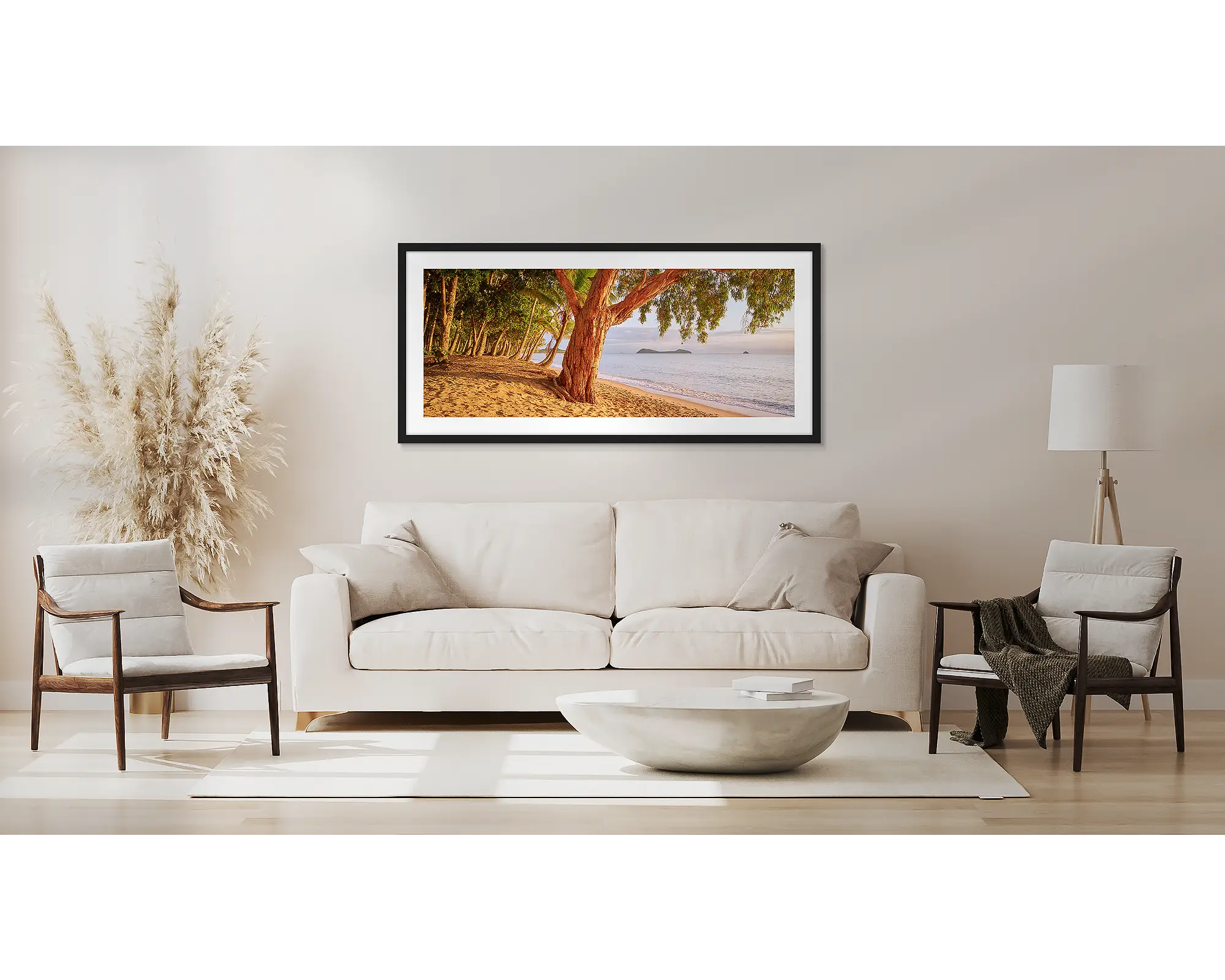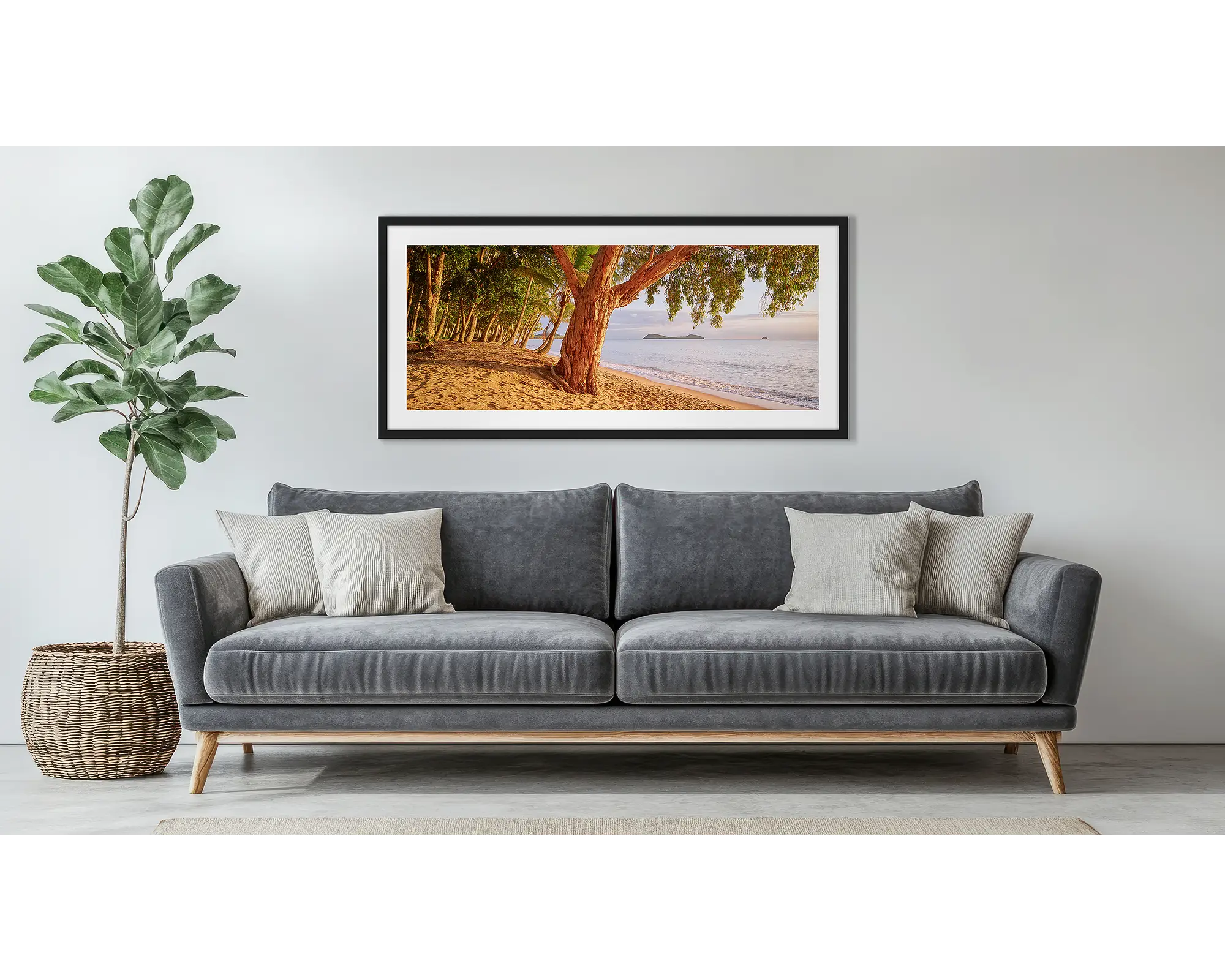 //www.scottleggo.com/cdn/shop/files/cairns-escape-framed-wall-art-print-of-sunrise-on-tropical-beach-with-black-frame-hung-above-couch.webp?v=1759293759 1.25