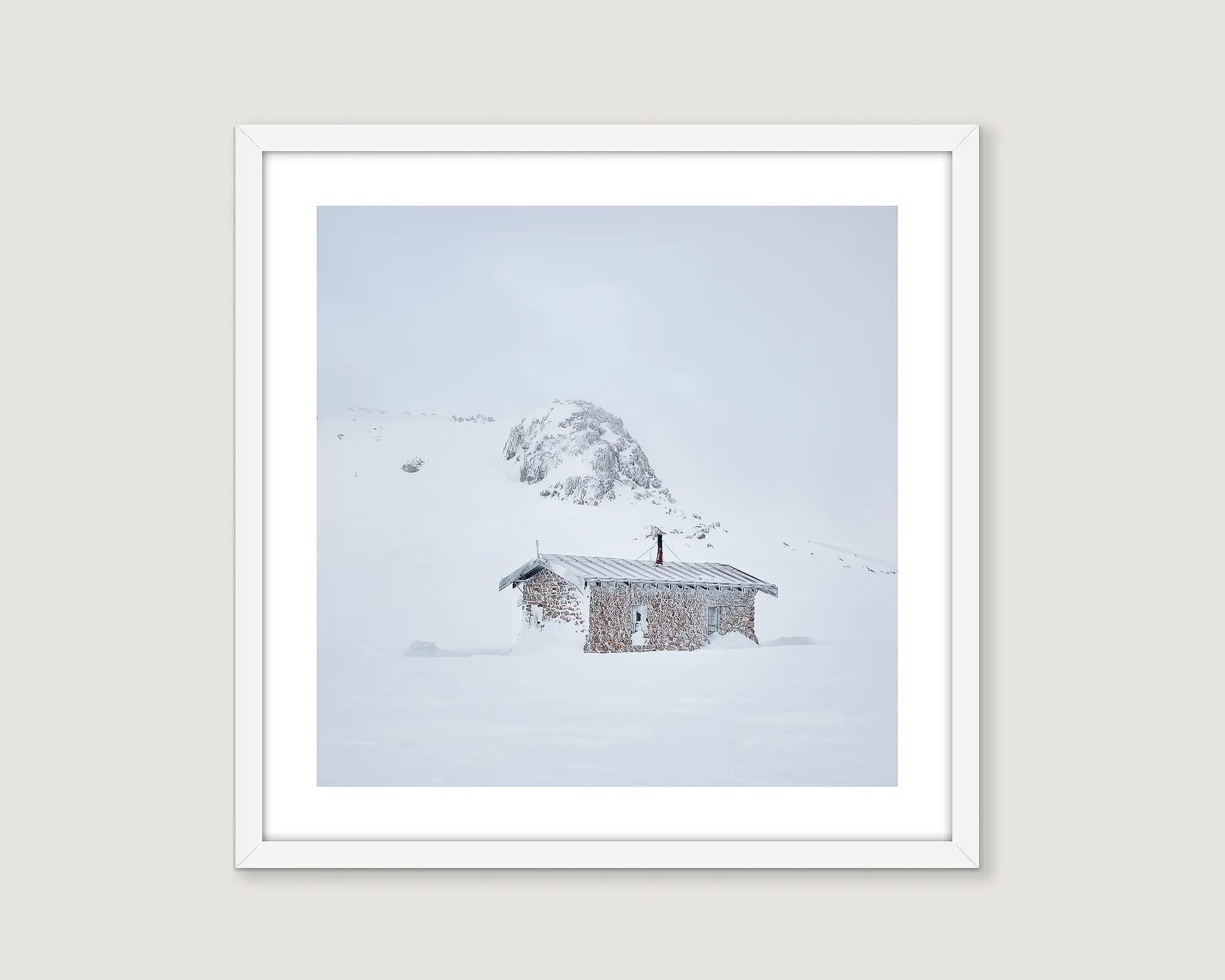 Transform your home into a winter wonderland with this SEAMANS HUT wall art. This print captures the raw beauty of Seamans Hut with snow and ice in winter, with a minimalist perspective. Perfect for adding a touch of winter magic to any room.