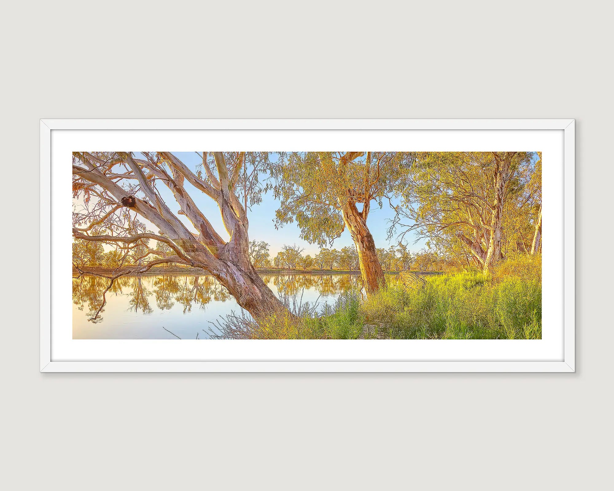 Scott’s MURRAY SUNRISE represents a breath taking celebration of the beauty and tranquil moments found along the majestic Murray River. Featuring a stunning sunrise you can bring the spirit of this iconic waterway into your home with this evocative wall art. Order now and transform your space with this impressive riverfront view. With various size and framing options available, this print fits into both expansive and more intimate settings, making it a versatile choice for the walls of your home.