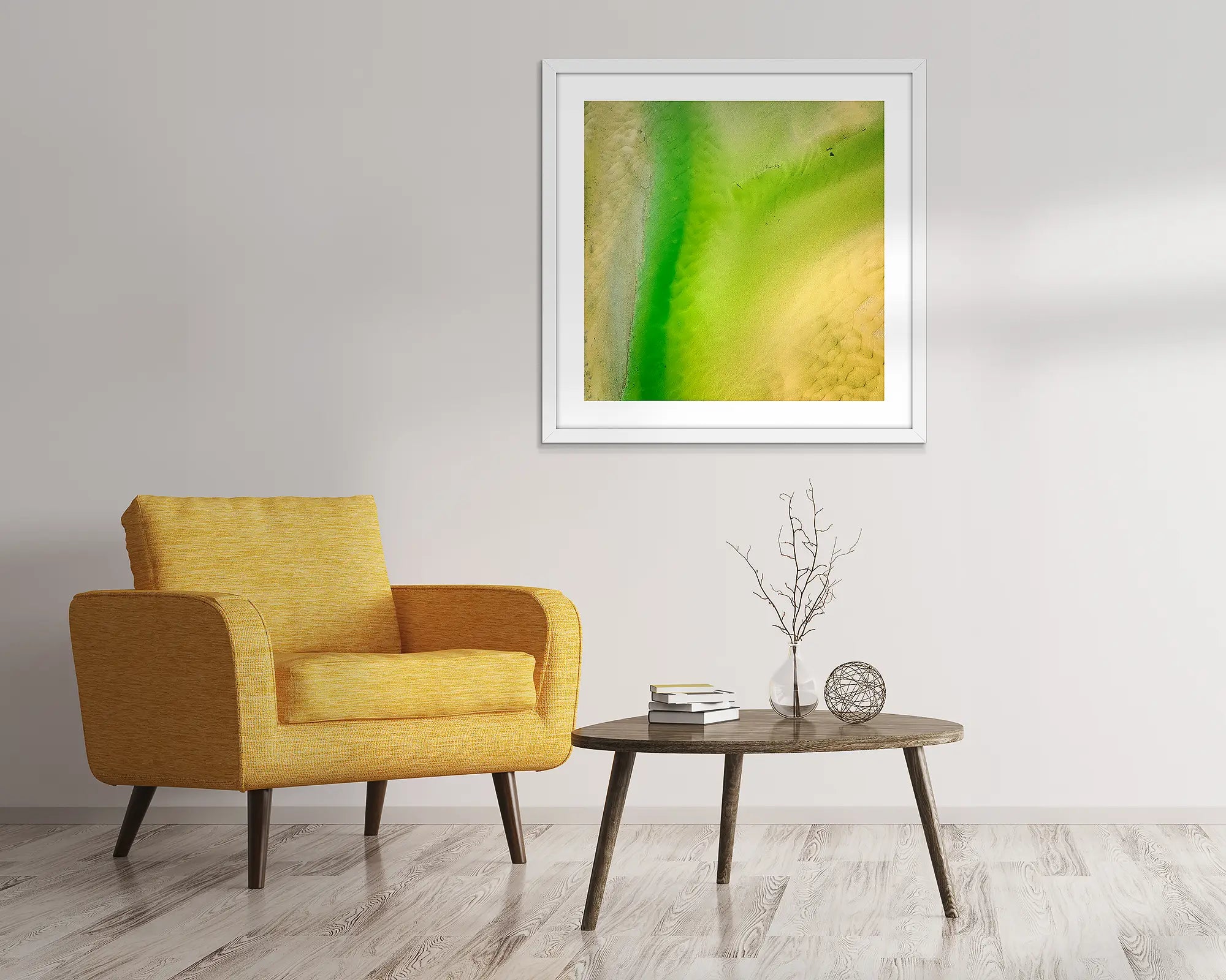 //www.scottleggo.com/cdn/shop/files/lemon-and-lime-abstract-aerial-wall-art-of-durras-framed-in-white-frame-hung-above-chair.webp?v=1759206972 1.25