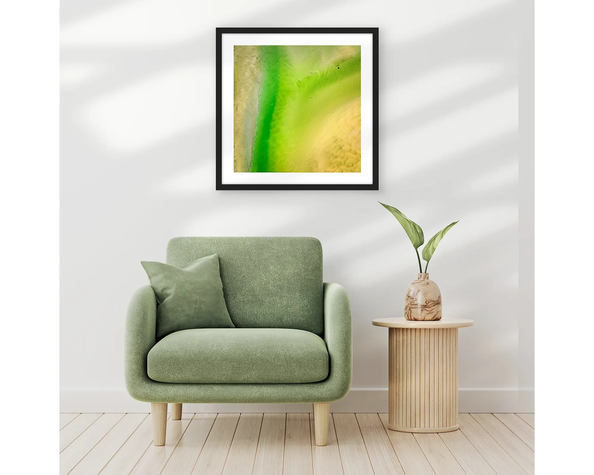 //www.scottleggo.com/cdn/shop/files/lemon-and-lime-abstract-aerial-wall-art-of-durras-framed-in-black-frame-hung-above-chair.webp?v=1759206972 1.25
