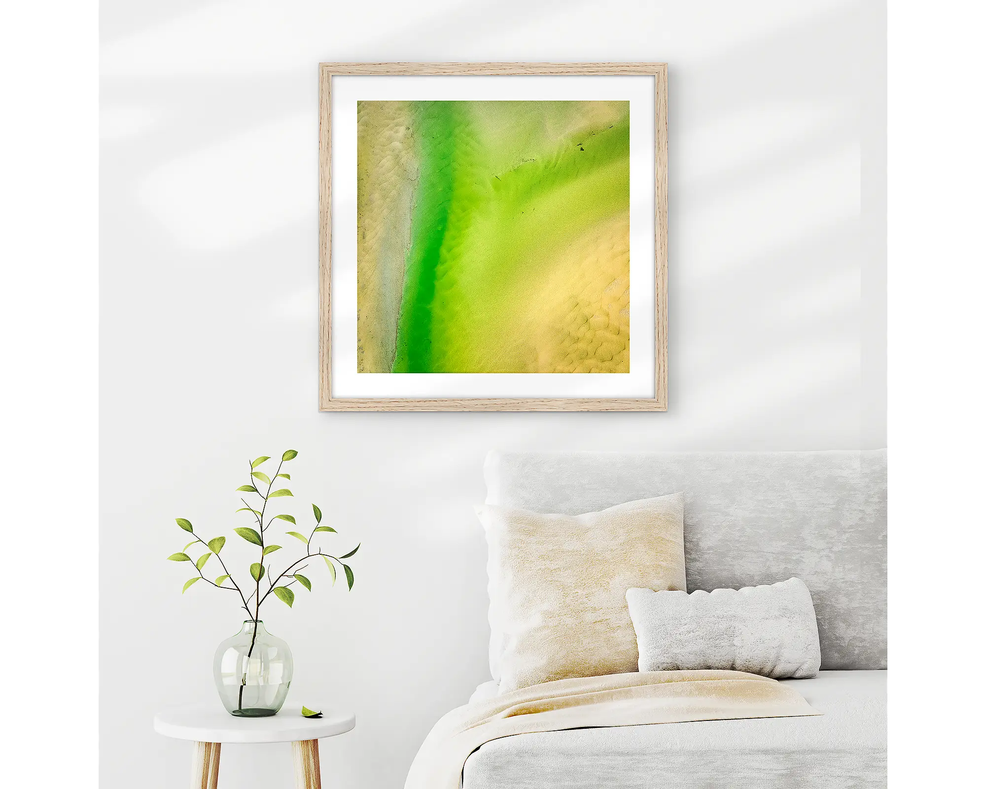 //www.scottleggo.com/cdn/shop/files/lemon-and-lime-abstract-wall-art-print-of-durras-lake-framed-in-white-frame-hung-above-single-seat-couch.webp?v=1757206609 1.25