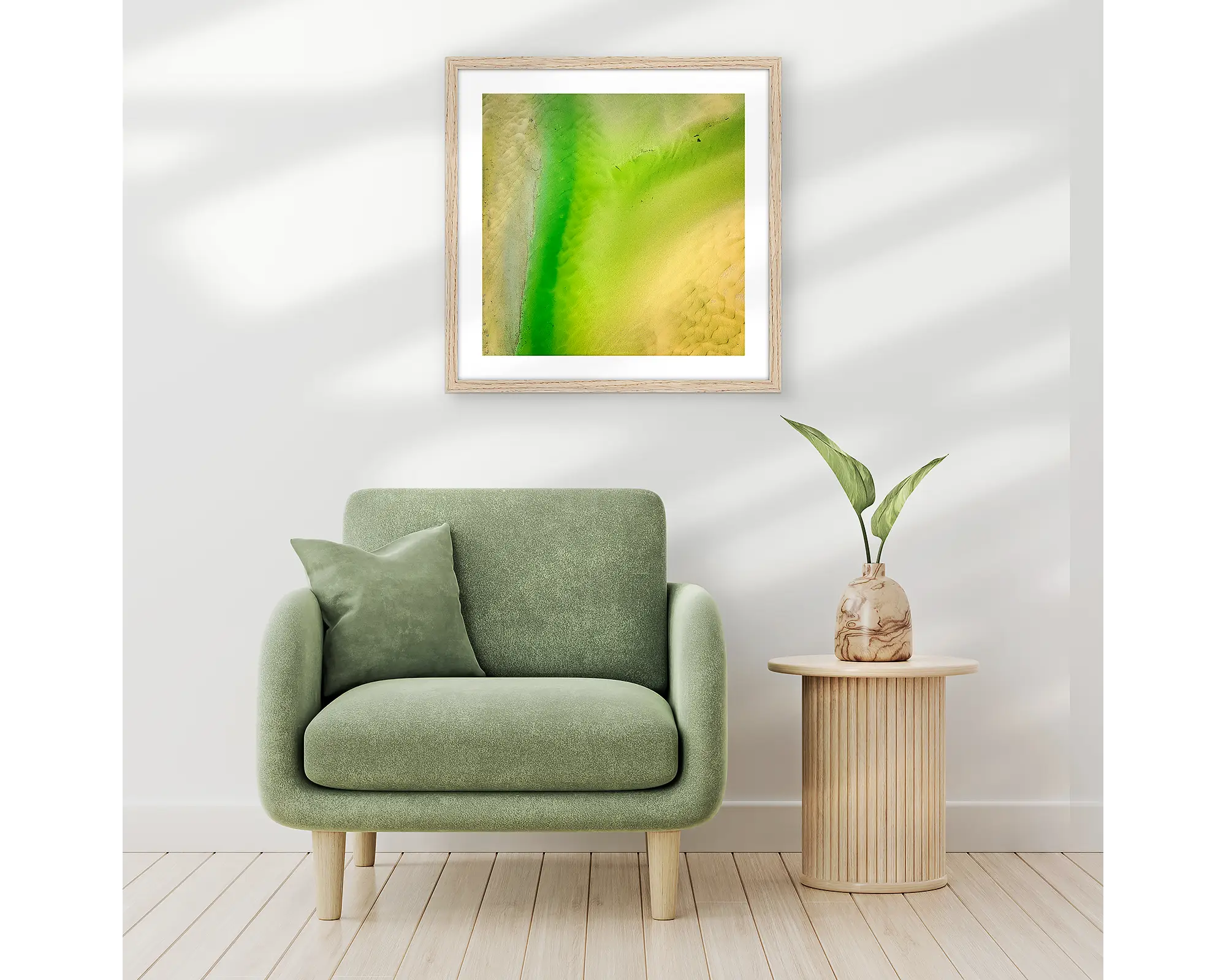 //www.scottleggo.com/cdn/shop/files/lemon-and-lime-abstract-aerial-wall-art-of-durras-framed-in-tasmanian-oak-frame-hung-above-chair.webp?v=1759206972 1.25