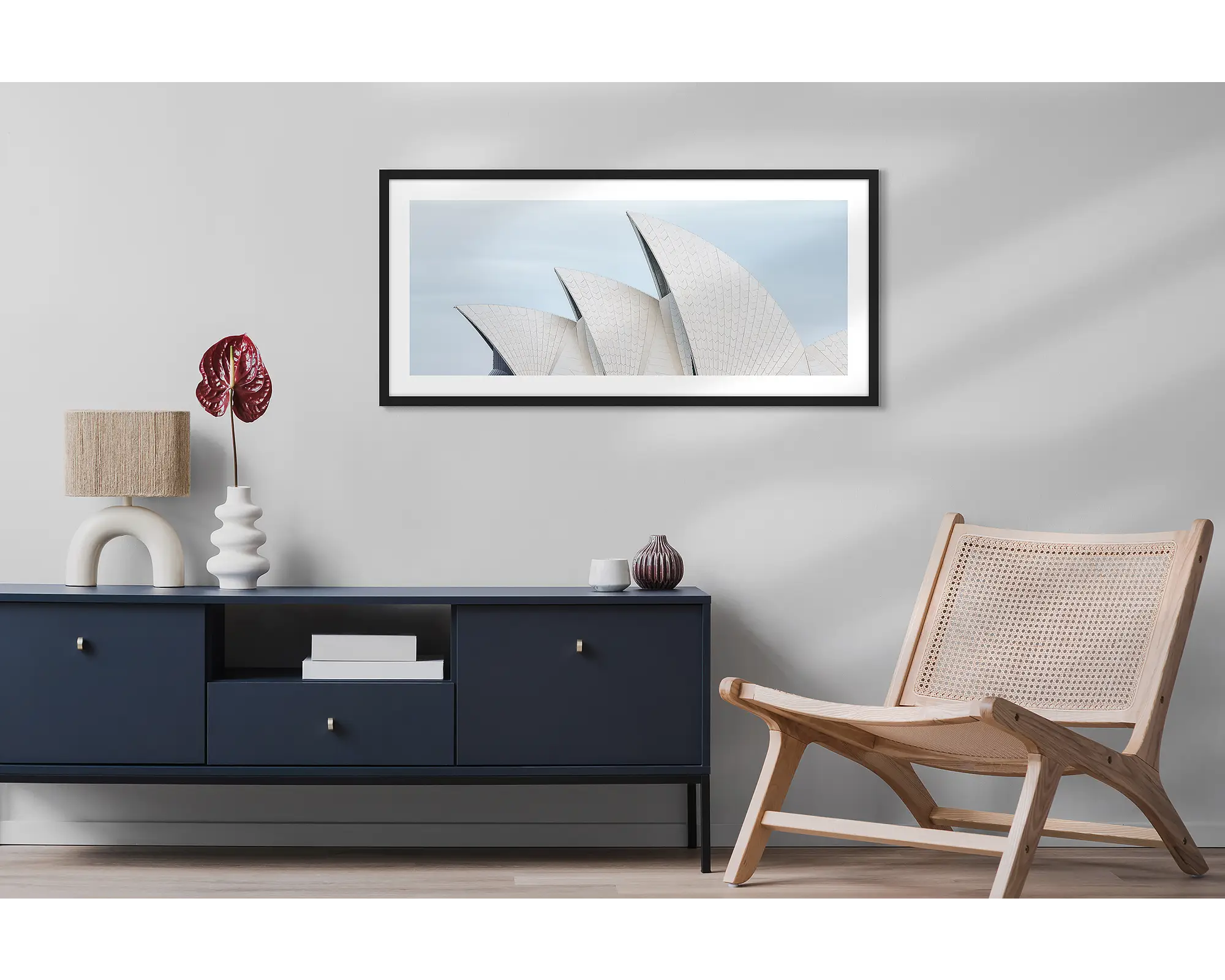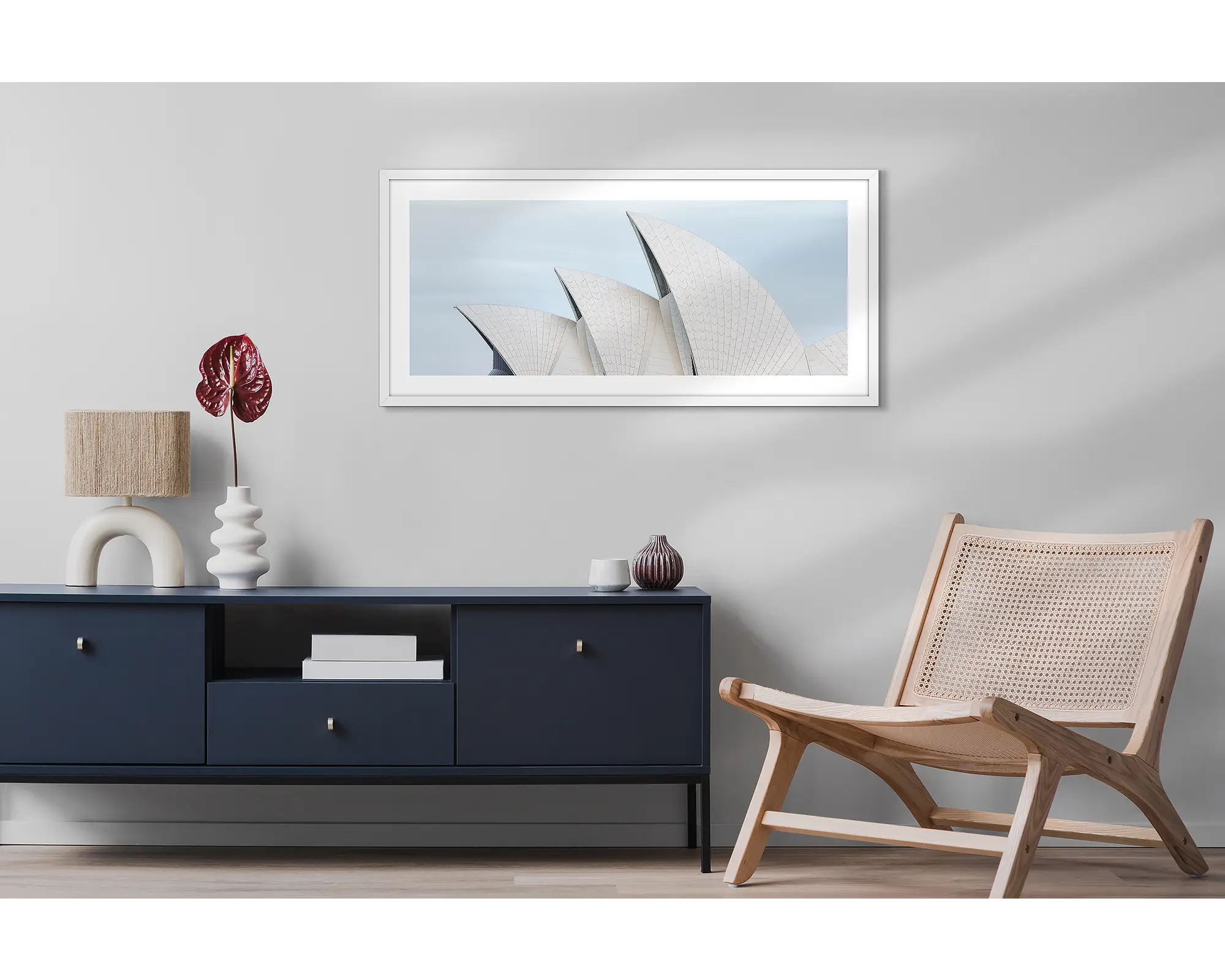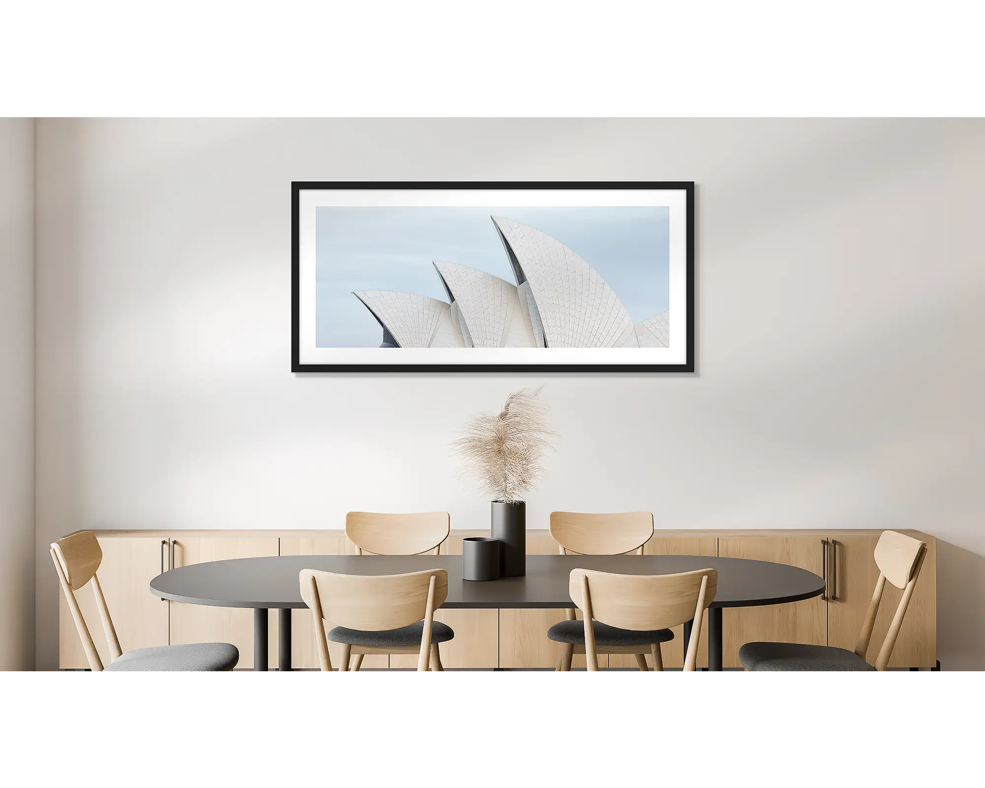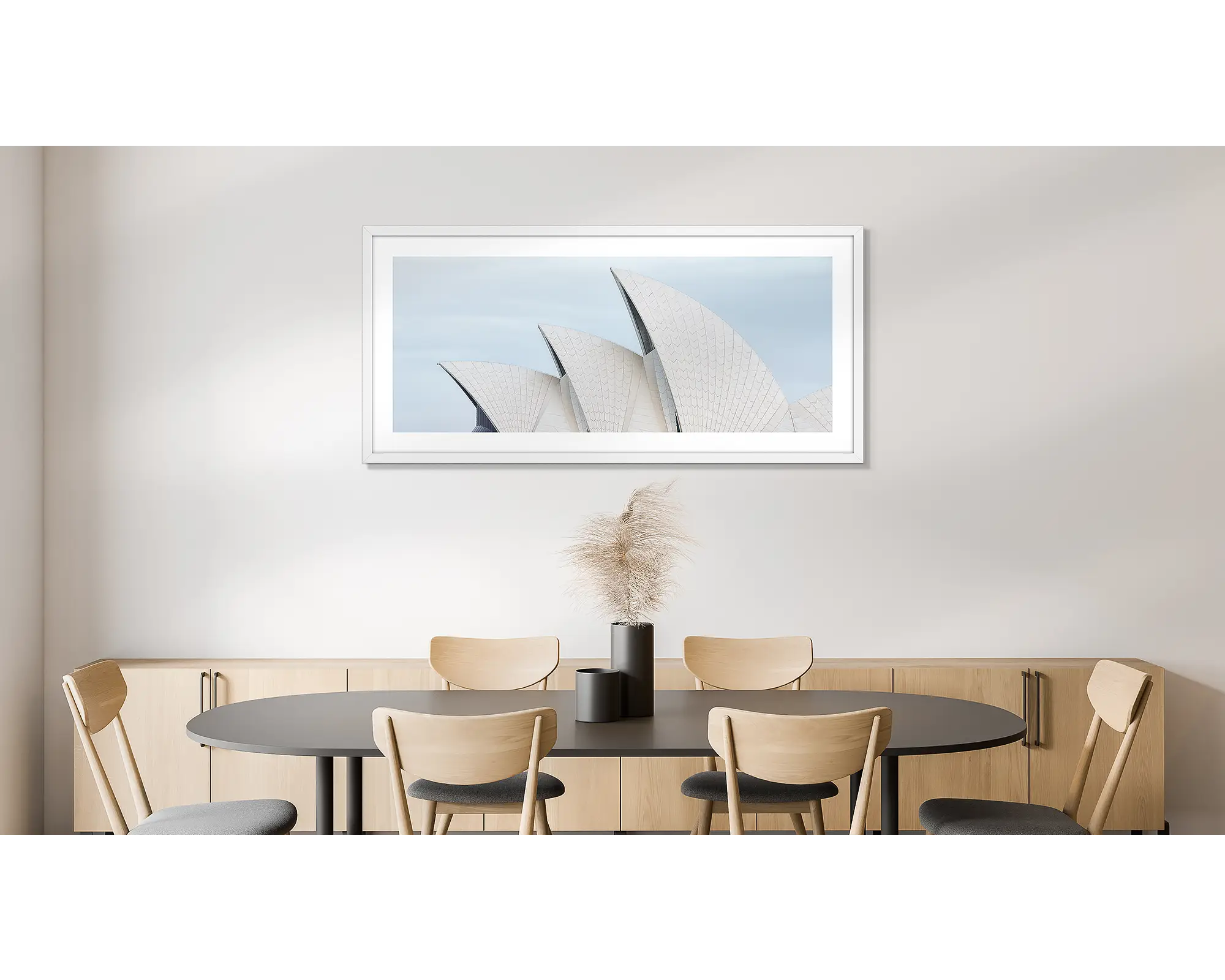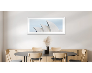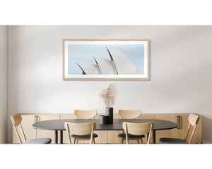 This simple and modern wall art print of the Sydney Opera House will transform any space. With its focus on the sails of the Sydney Opera House, it makes a striking artwork with a neutral colour palette. Boldly bring this famous Sydney icon into your room and choose a big size for maximum impact.