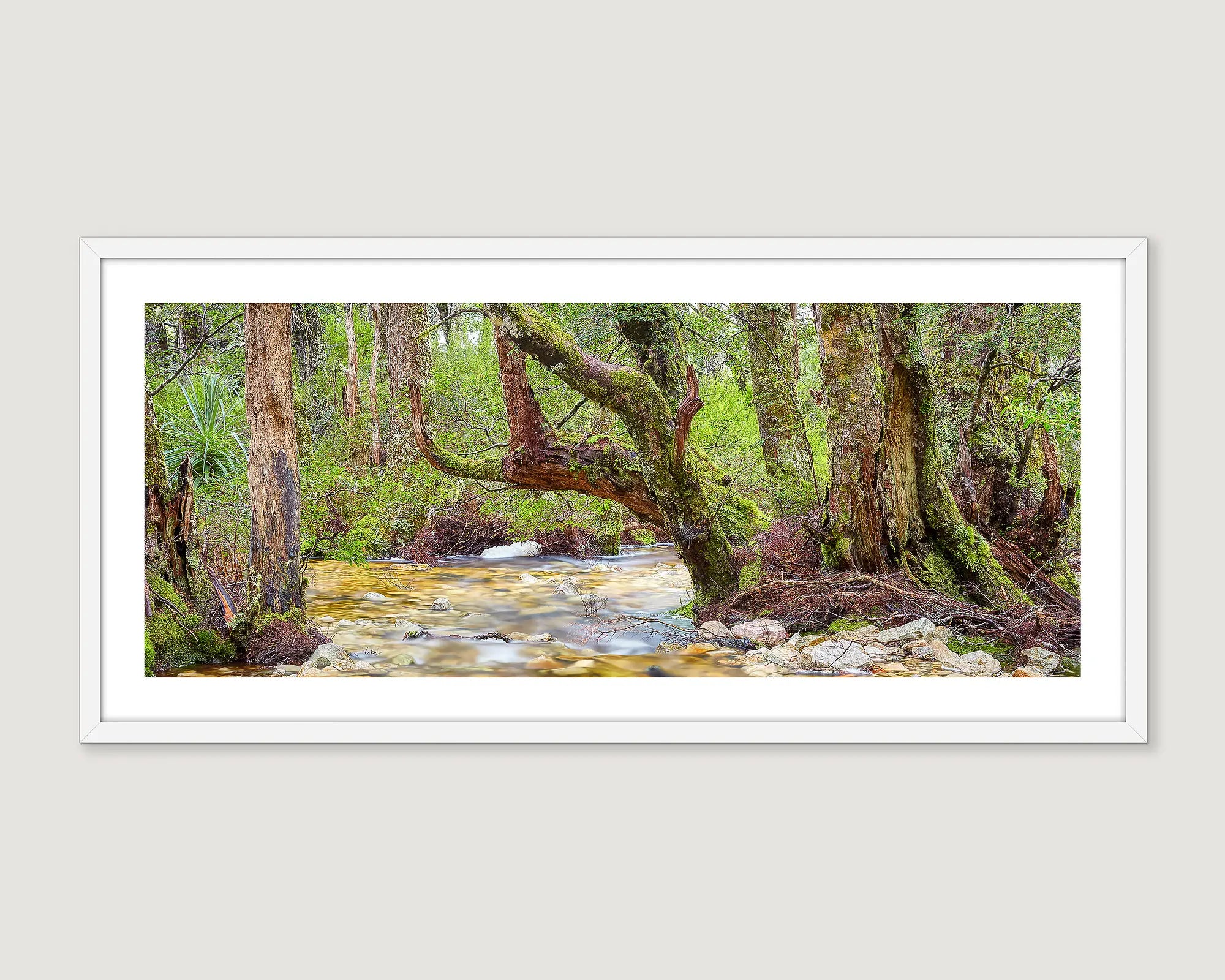 Experience the charm of Tasmania's Cradle Mountain - Lake St Clair National Park, with this wall art print. Capturing a clear creek amongst the ancient forest, this print will transport you to this world heritage area no matter where you choose to hang it.