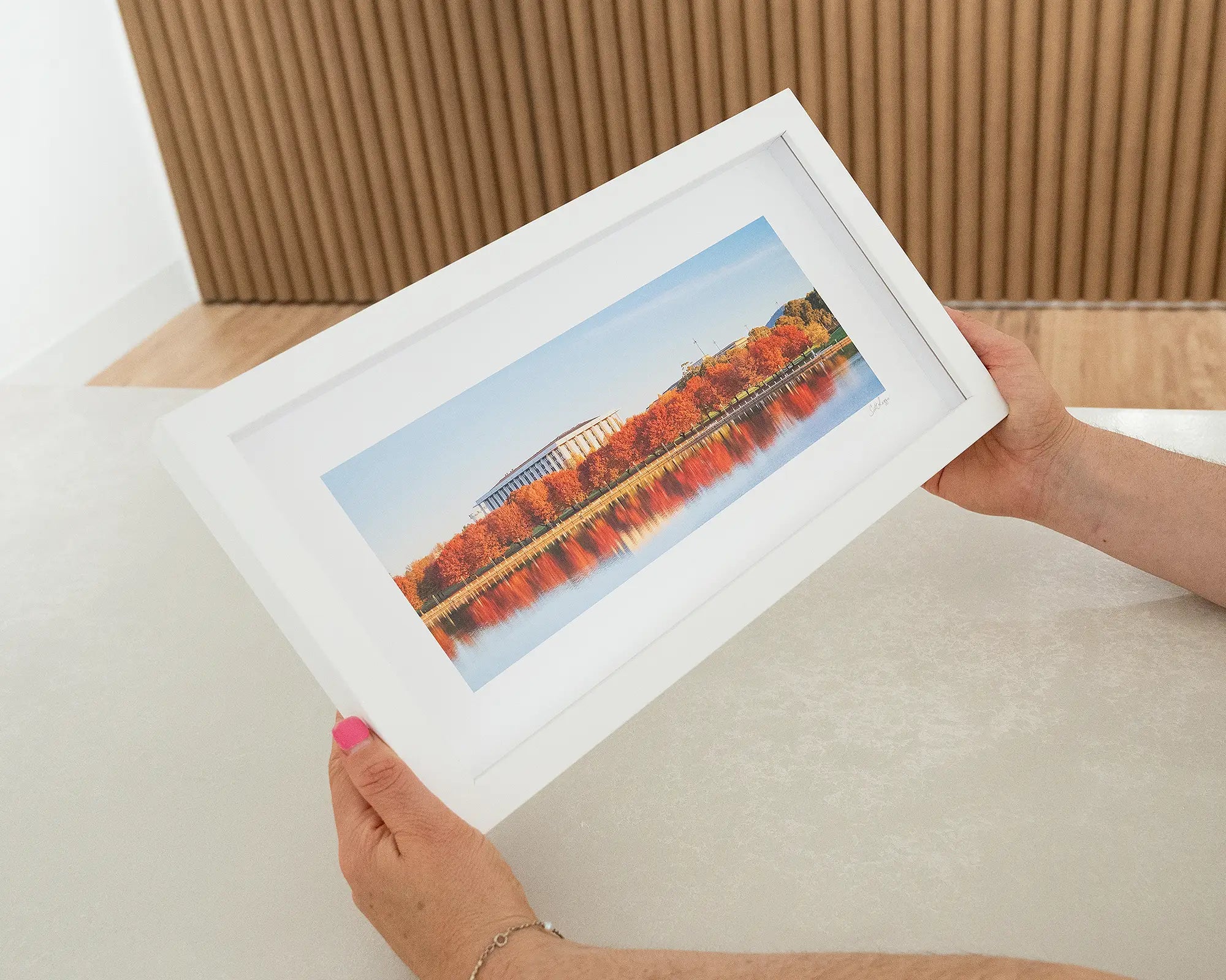 //www.scottleggo.com/cdn/shop/files/bookend-photographic-wall-art-print-of-red-trees-beside-lake-burley-griffin-with-white-frame-hung-on-dining-room-wall.webp?v=1753416283 1.25