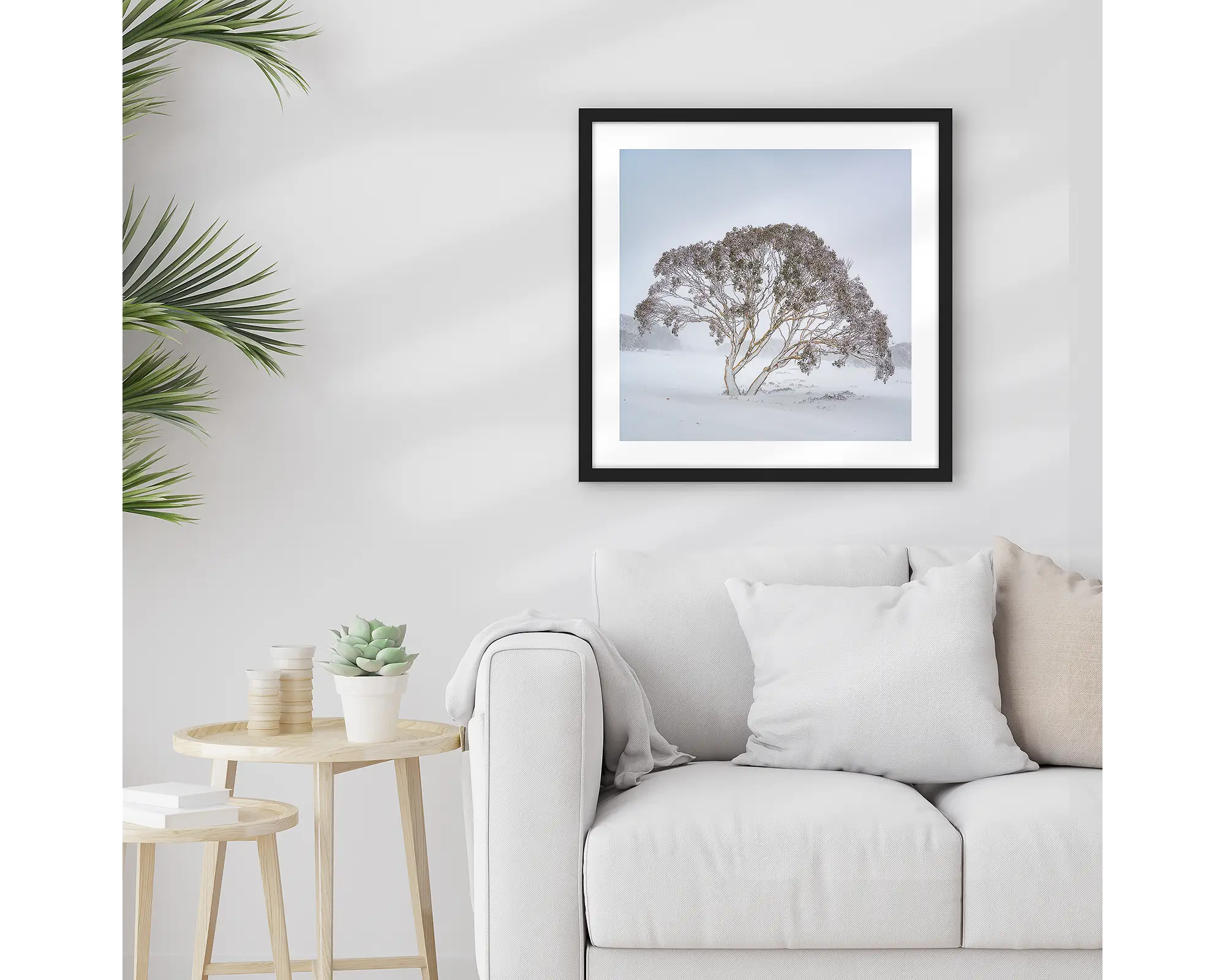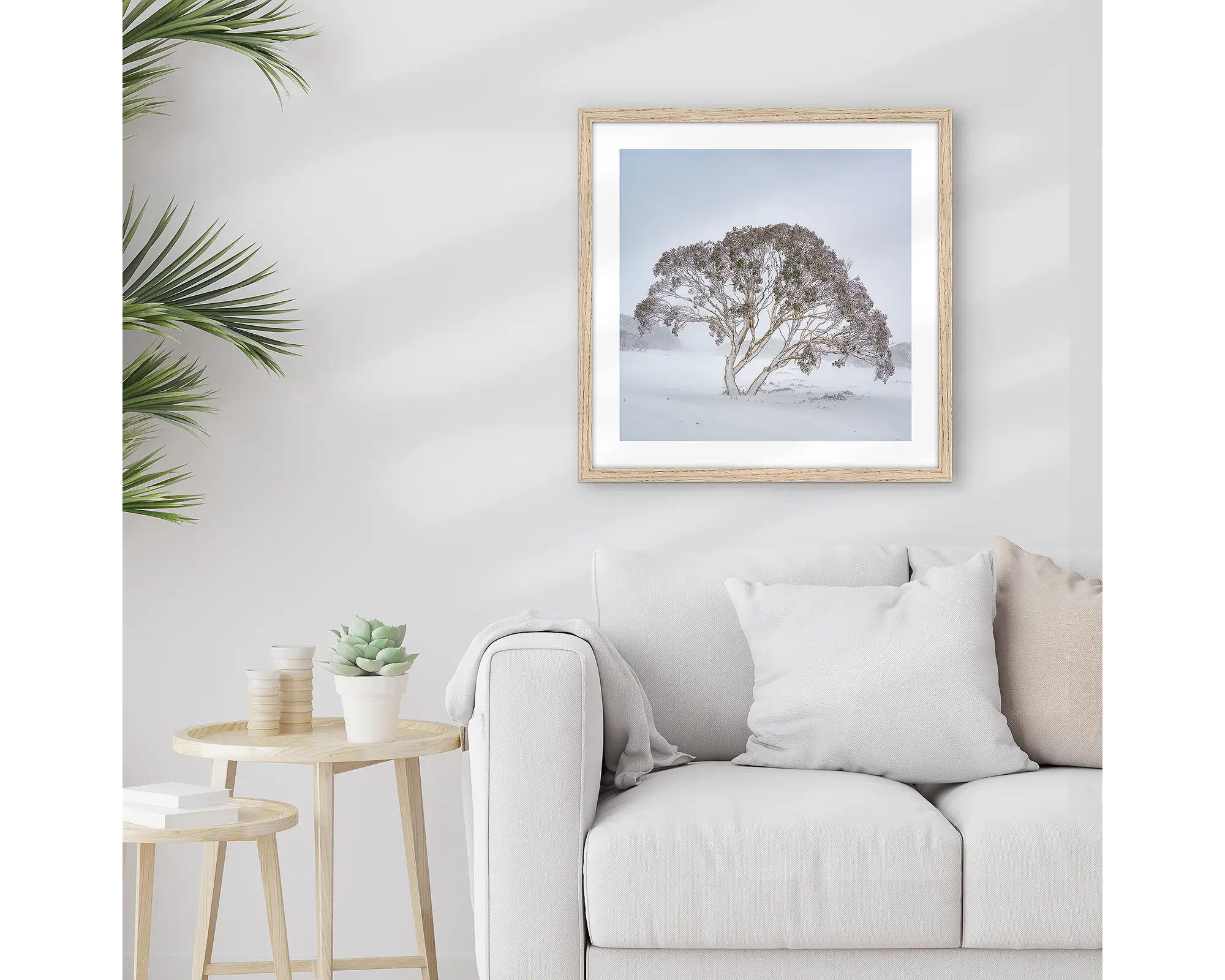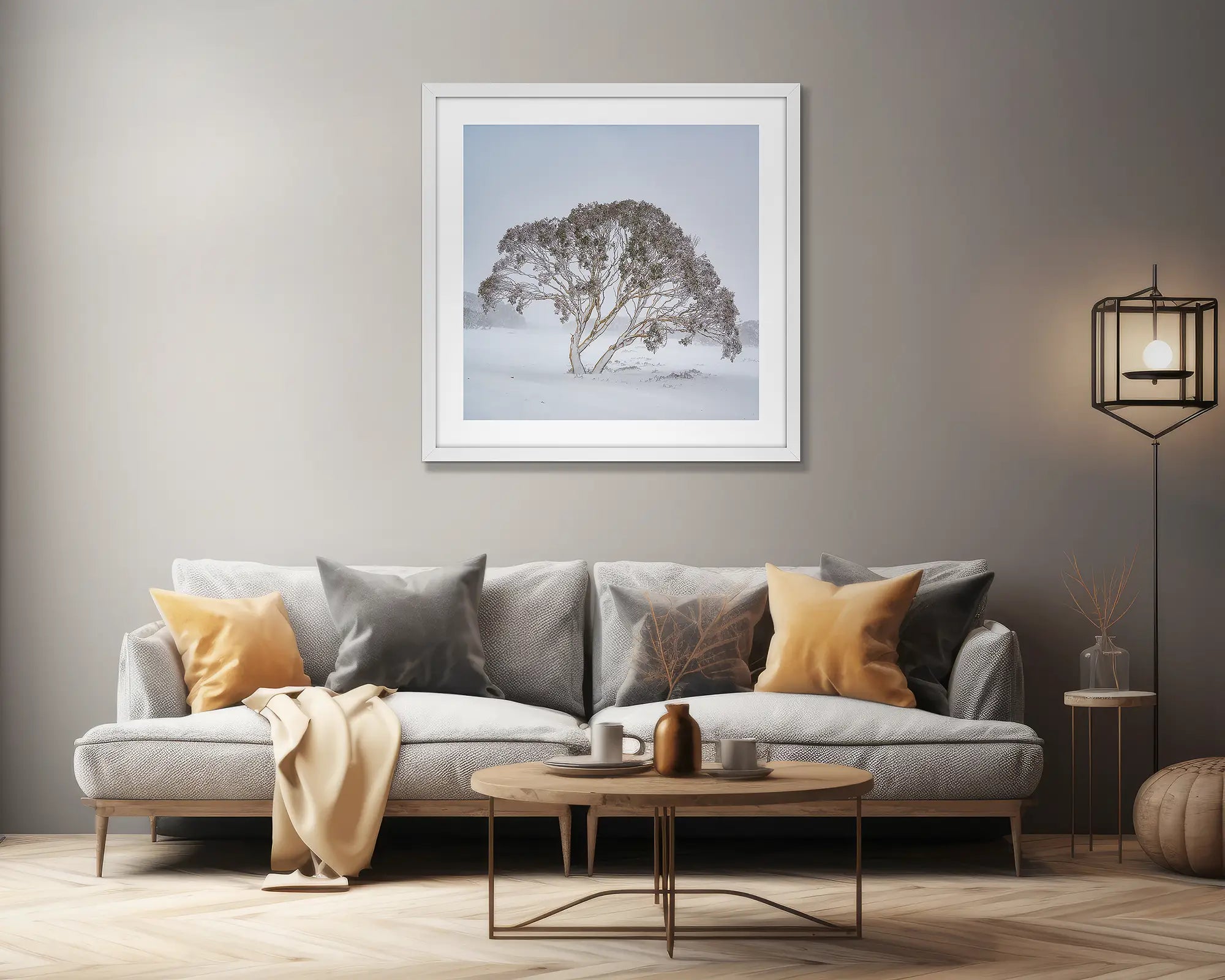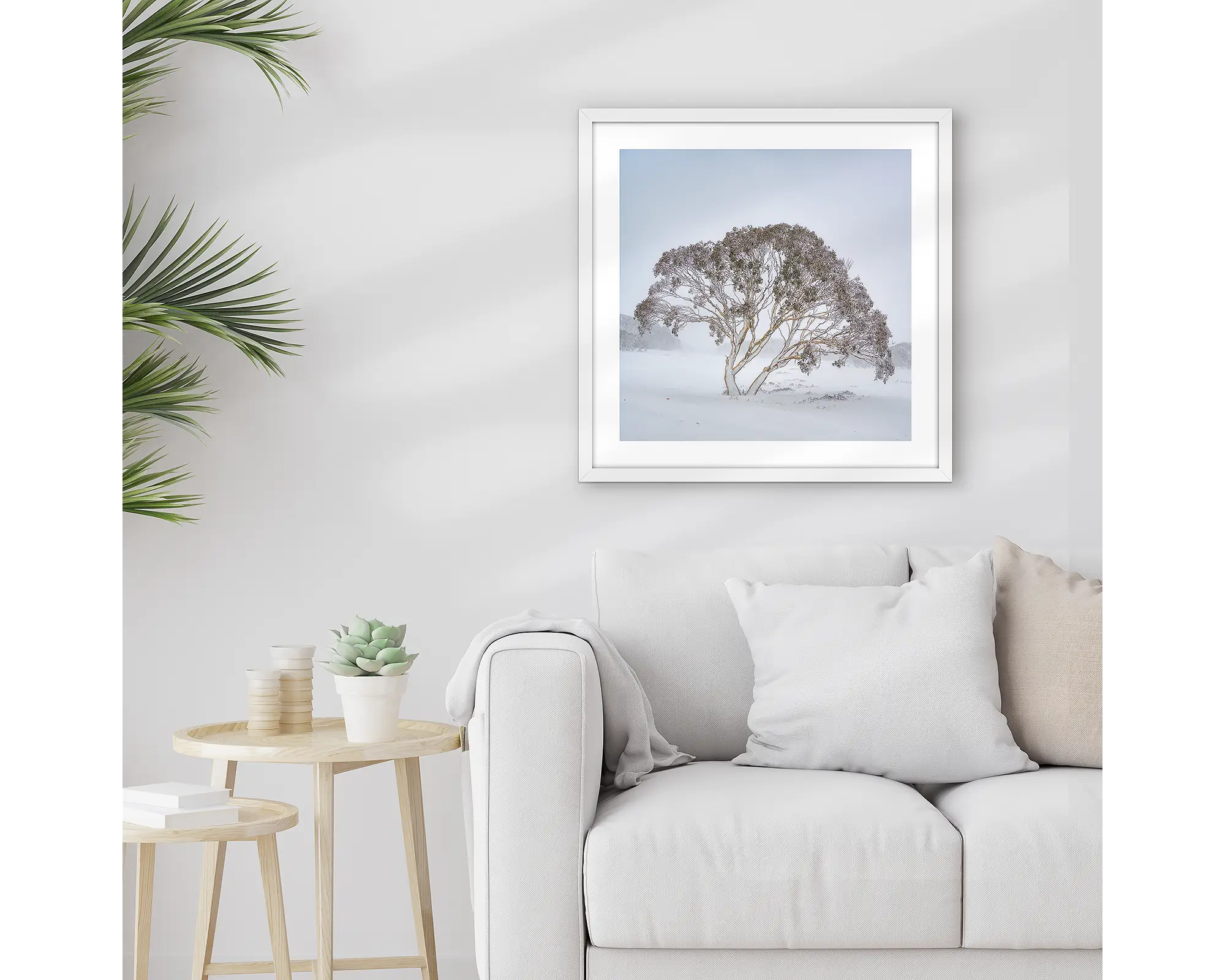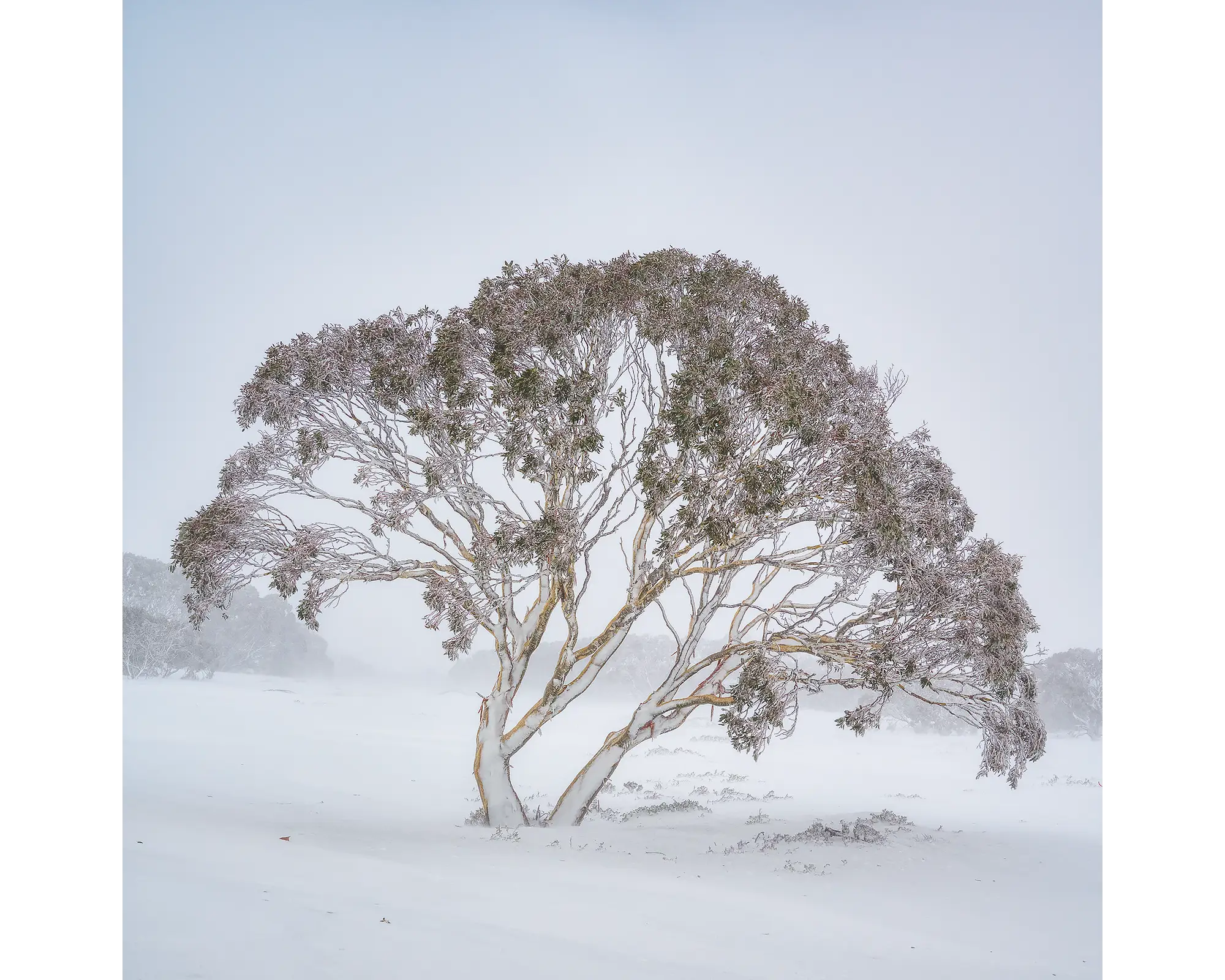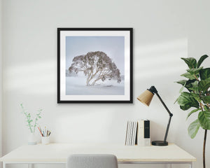 Bring a piece of Australian winter into your home or ski lodge with this print of an iconic snow gum in a winter snow. Perfect for skiers, snow boarders or anyone who just loves being out in the snow in winter.
